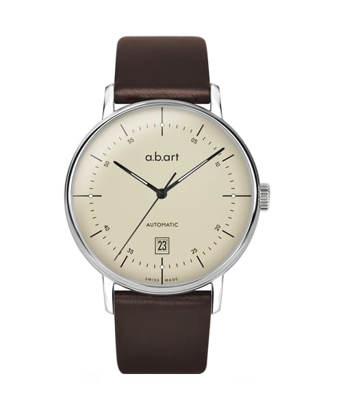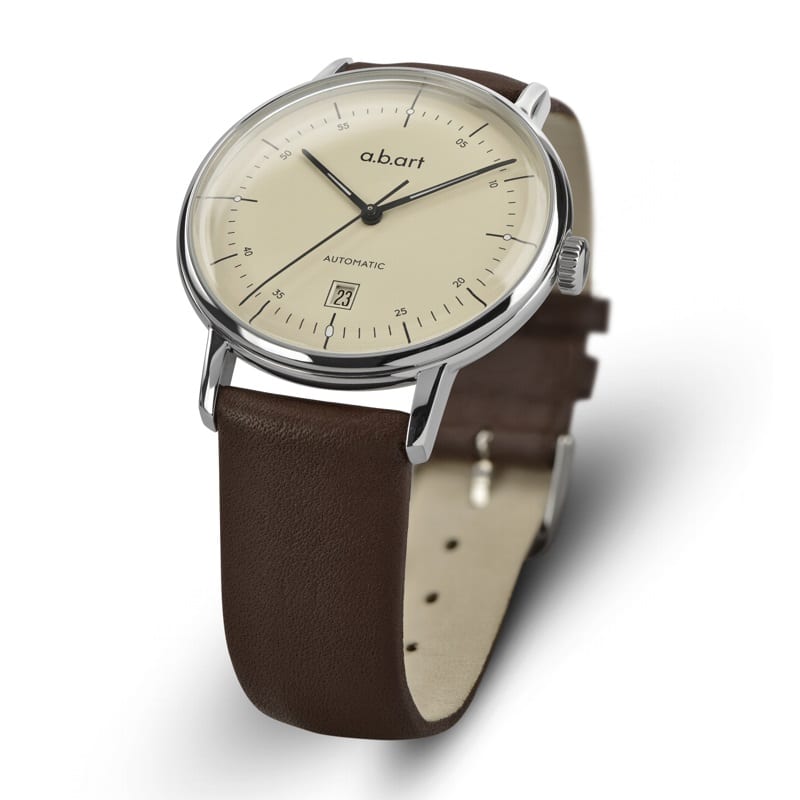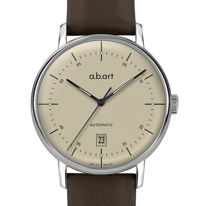 Cadran épuré, effet miroir unique dû au traitement spécial de la couleur du cadran, dôme en verre minéral rendant la Collection G si reconnaissable, le look de cette automatique est sûrement l’un des plus réussis de la gamme « Automatique » d’a.b.art Watch…