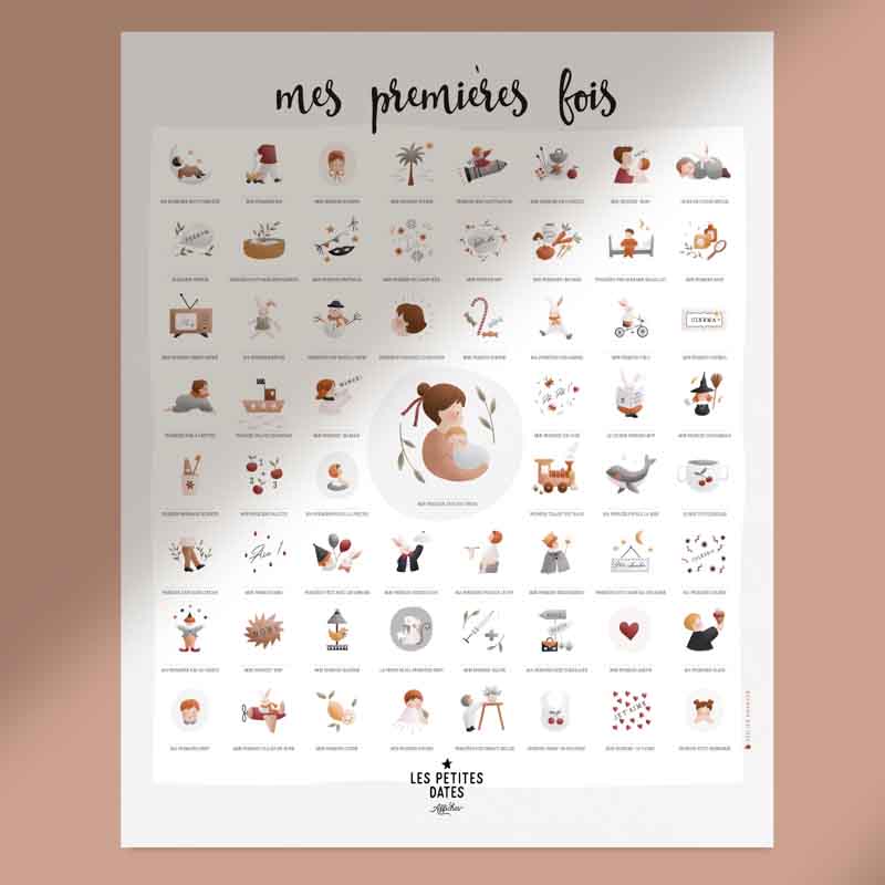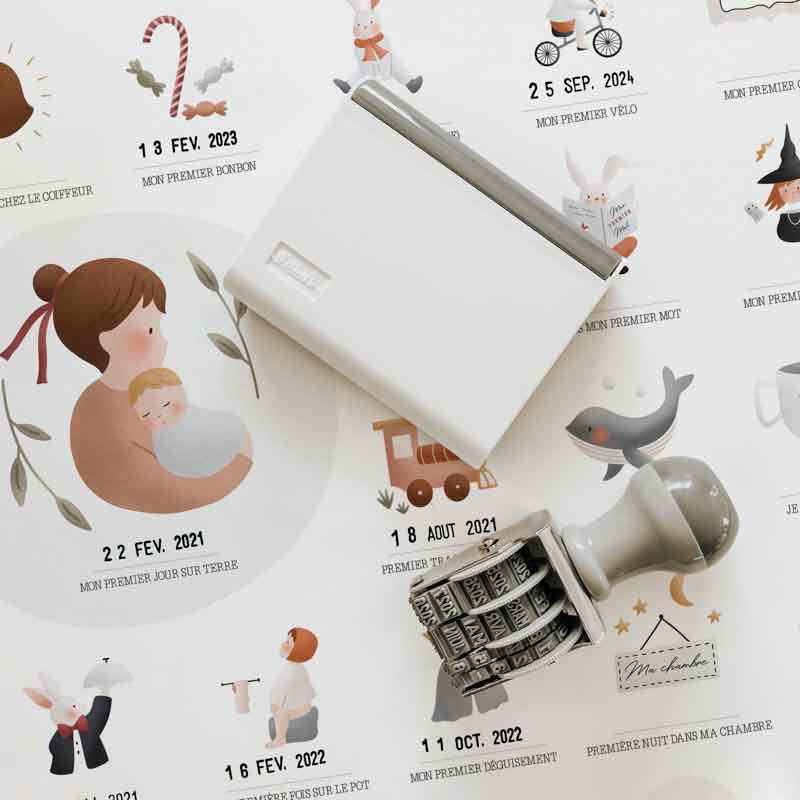 L’affiche « Mes Premières Fois » se décline dans une nouvelle version, non genrée, c’est un cadeau de naissance parfait. Une jolie affiche pour la chambre de bébé mais pas seulement. Grâce au tampon dateur vous venir inscrire la date de toutes les premières fois de bébé : de sa naissance, à son premier mot, en passant par son premier jour sans couche. Des souvenirs gravés pour la vie !