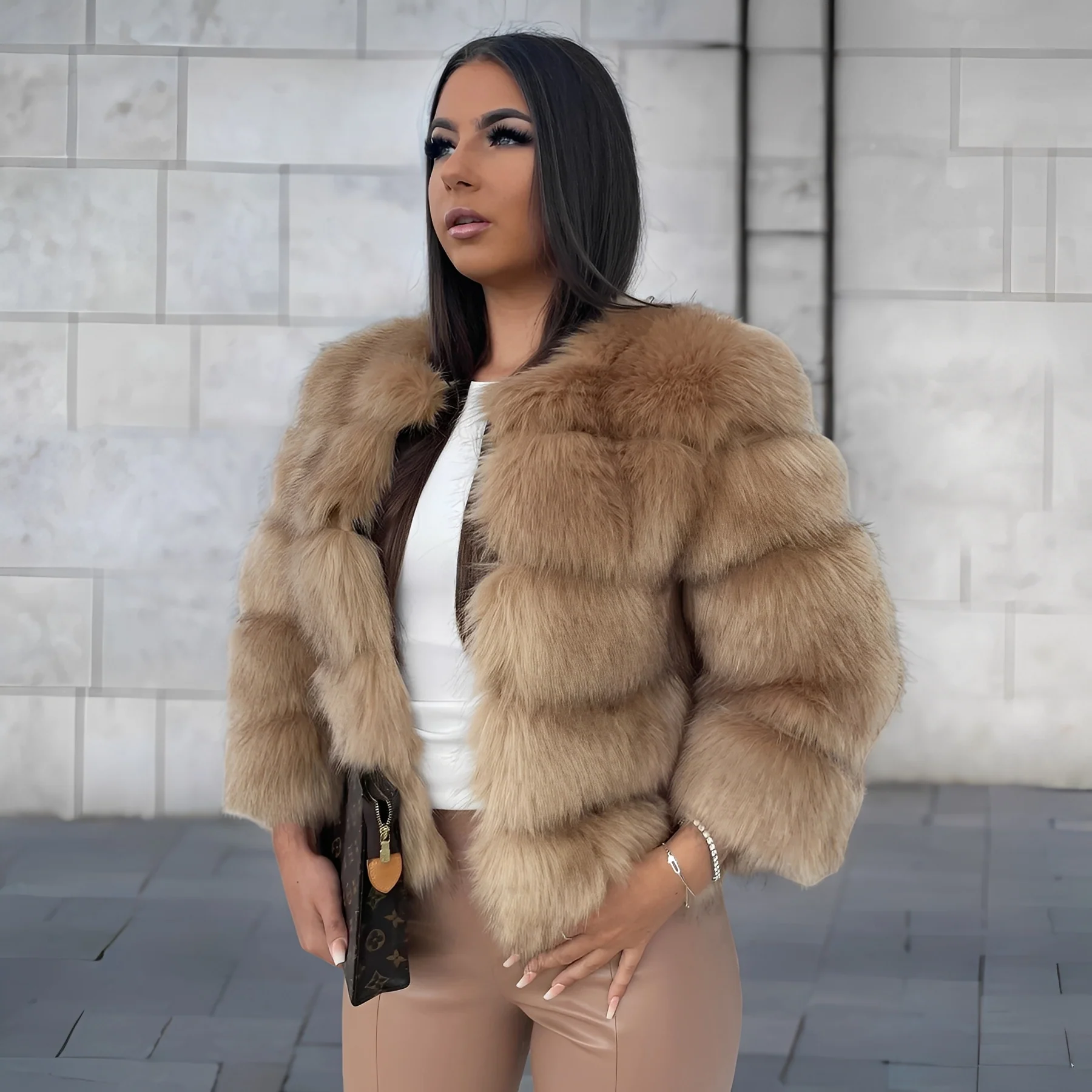 Ce manteau féminin chic en fausse fourrure de qualité supérieure propose une allure élégante et chaleureuse, apportant une chaleur plaisante. Le tissu doux garantit un confort optimal, parfait pour les froides journées hivernales. Sa coupe moderne et courte offre de nombreuses options de style – idéal pour un usage quotidien, des sorties ou des événements spéciaux. Facile d’entretien et agréable à porter, c’est un indispensable pour toute garde-robe d’hiver.