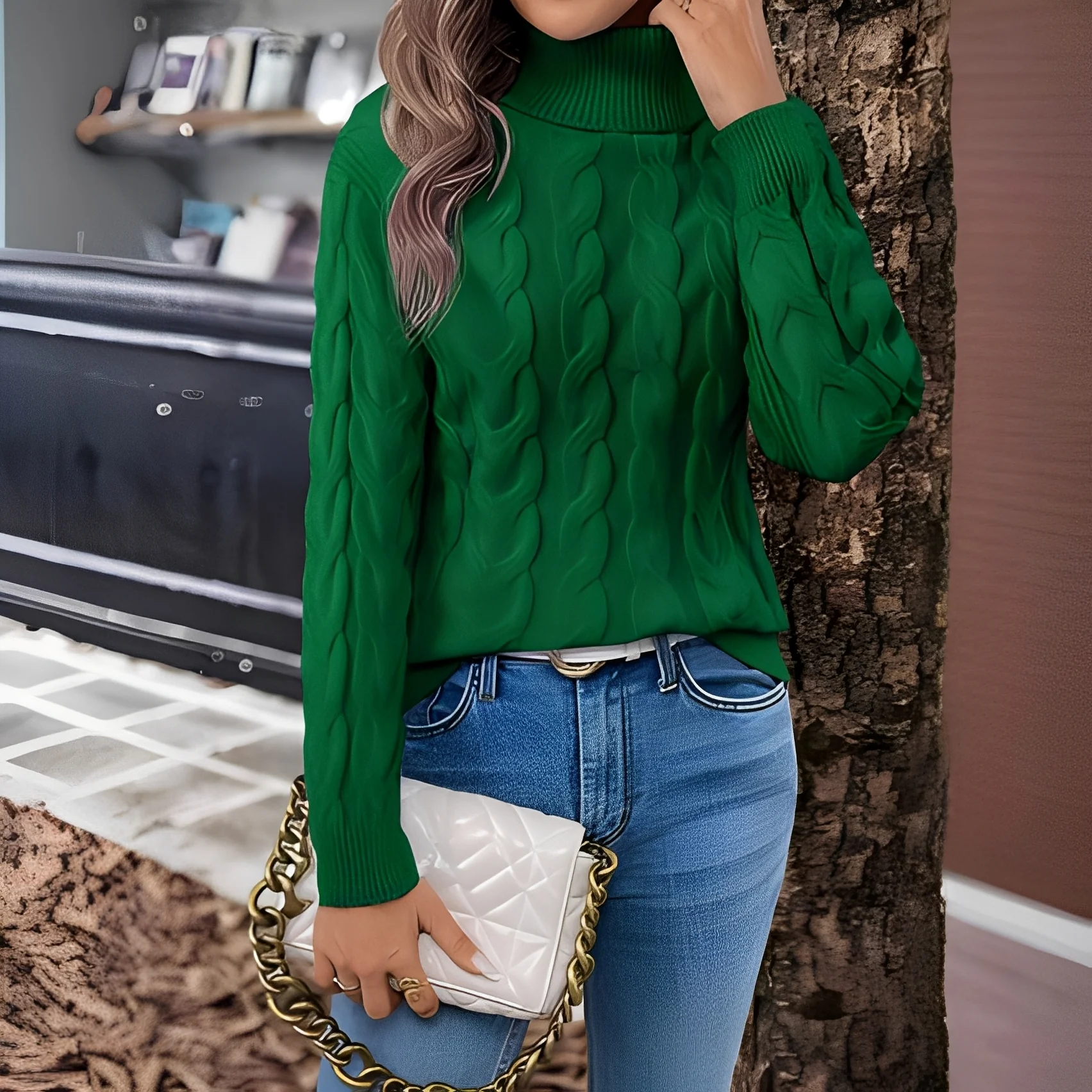 Amélie allie douceur, chaleur et style : le col roulé parfait pour les journées plus fraîches.
