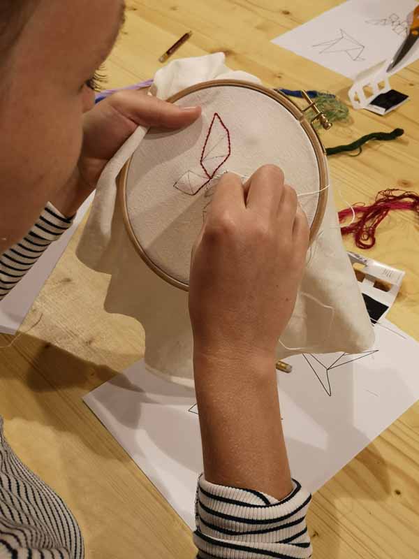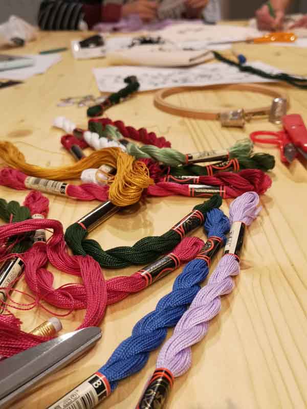 Tout le matériel à broder est fourni (aiguilles, fils, dessin à broder). Vous pouvez apporter un tissu (chaine et trame) si vous le souhaitez, sinon nous vous fournirons également un support pour réaliser la broderie.
