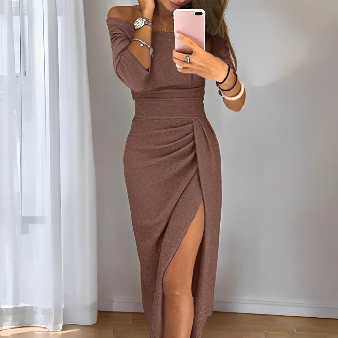 - Design sophistiqué : style à épaules dénudées avec une élégante fente latérale pour un look féminin et moderne.