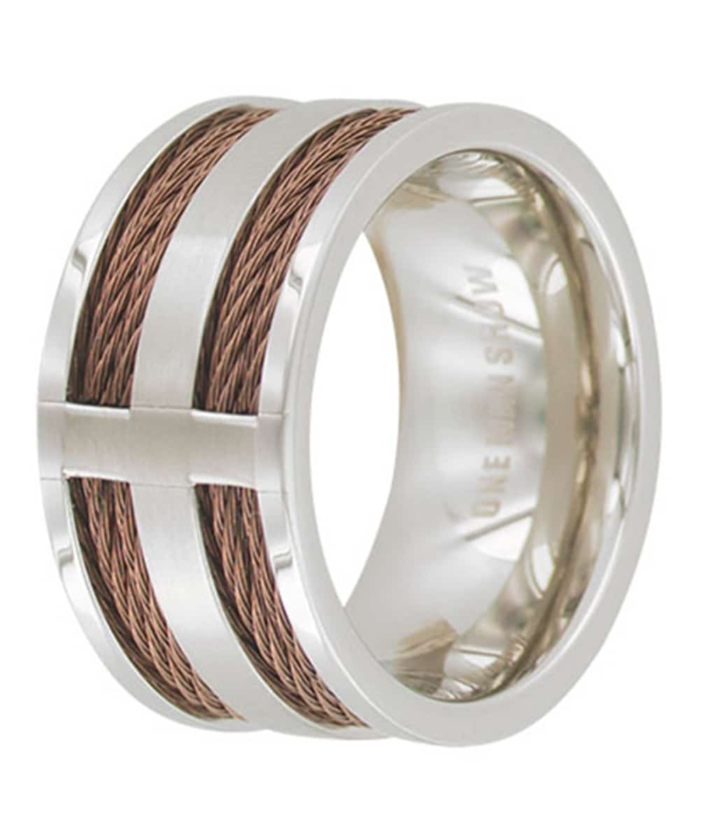 La bague Erico fantaisie large homme est fabriqué en acier et câble couleur chocolat.
