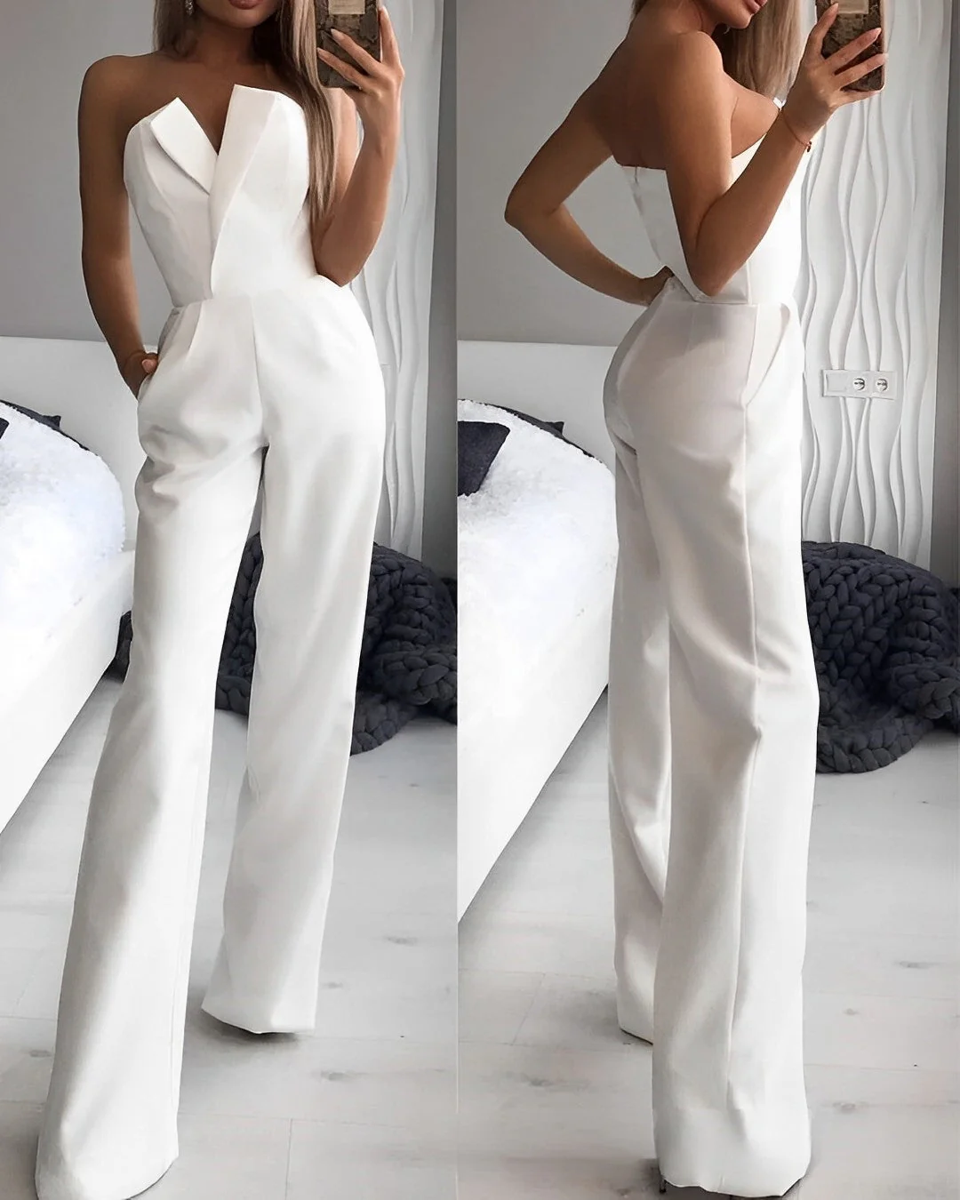 Découvrez la combinaison Blaire sans manches et col en V – une pièce chic et polyvalente qui associe style et confort. Avec son col en V ajusté et sa coupe sans manches, elle offre un style moderne et fluide, parfait pour de nombreuses occasions. La combinaison accentue la taille et la silhouette, tandis que ses jambes larges apportent une touche contemporaine. Son design à la fois minimaliste et raffiné permet de facilement l’accessoiriser, en faisant un incontournable de votre garde-robe pour une allure élégante et décontractée. Enrichissez votre garde-robe avec cette combinaison qui reflète une sophistication moderne et une élégance subtile.