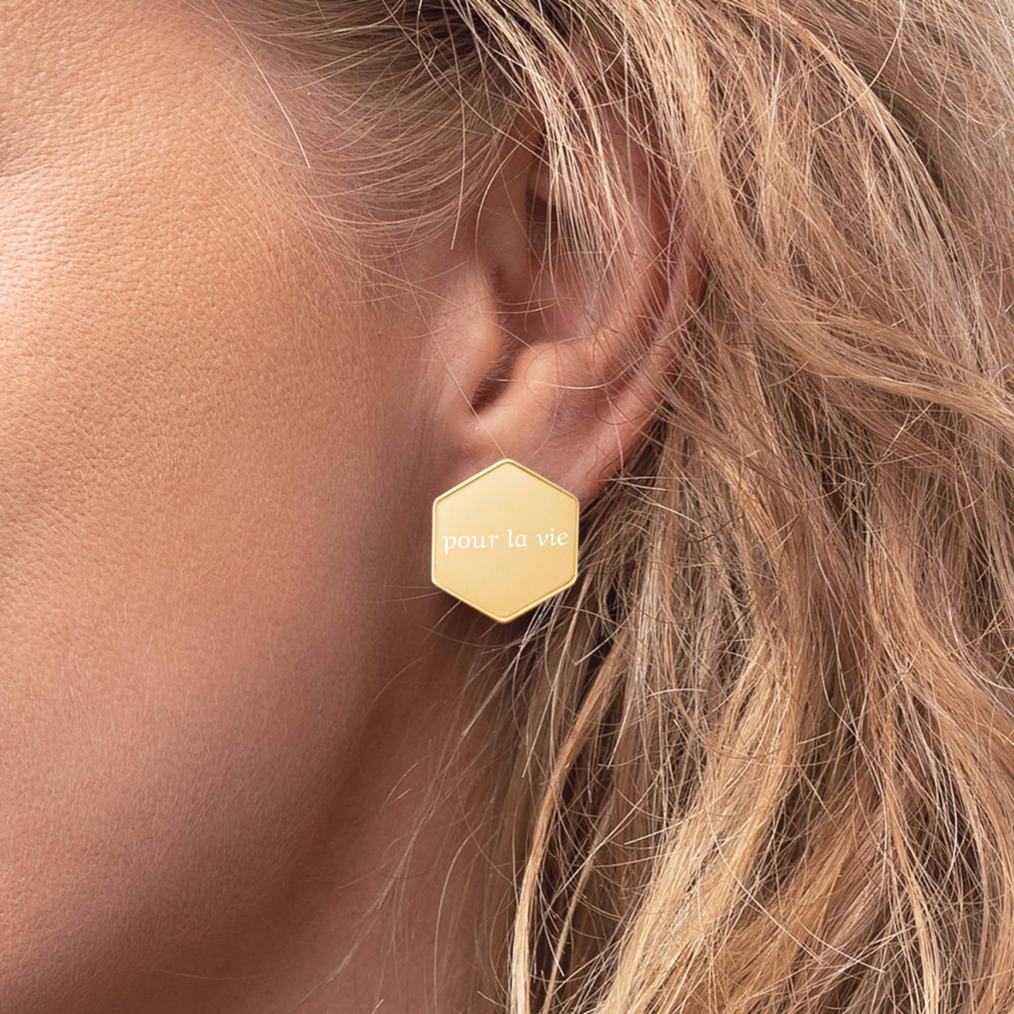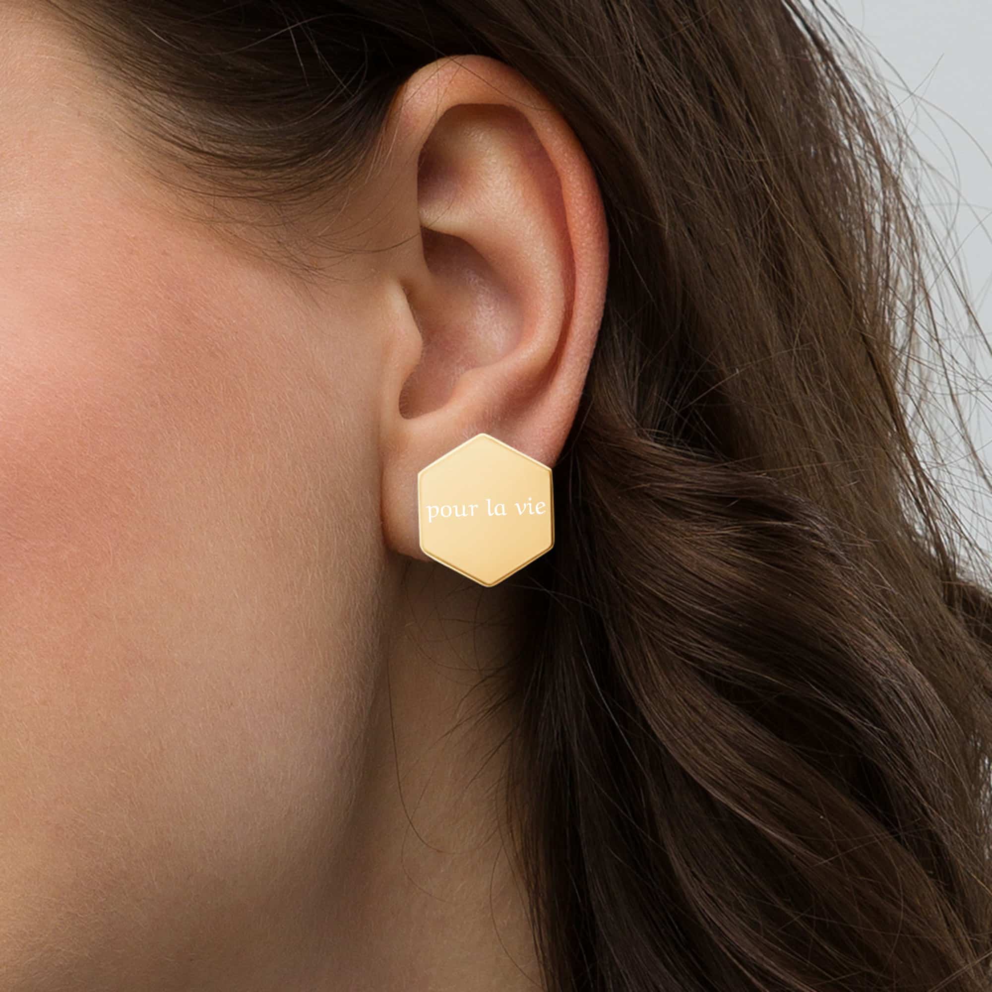 Ces boucles d’oreilles hexagonales sont le choix parfait pour un accessoire tendance, unique en son genre ou un cadeau attentionné. Les boucles d’oreilles sont en argent sterling, et enduites. Elles sont emballées dans une boîte à bijoux noire chic avec fermeture magnétique.