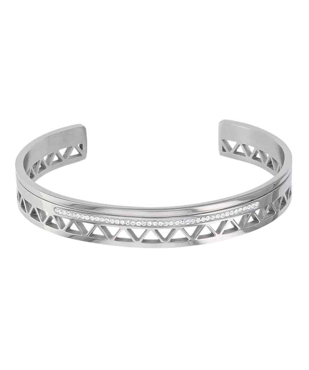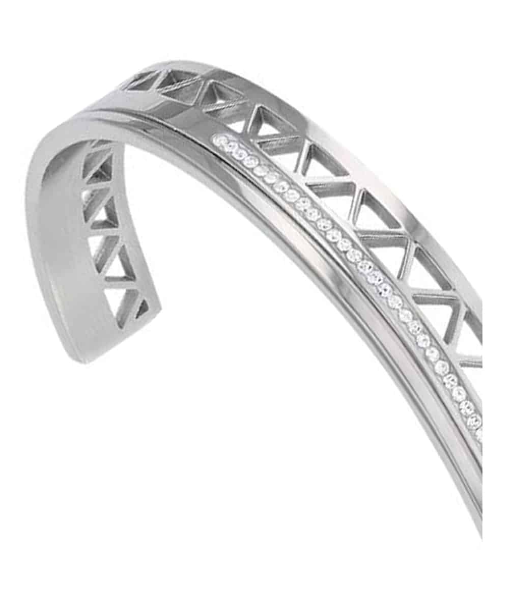 Le bracelet jonc Karen est fabriqué en acier inoxydable et cristal.