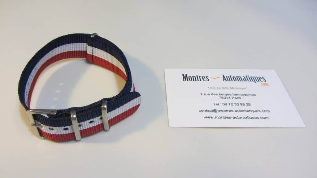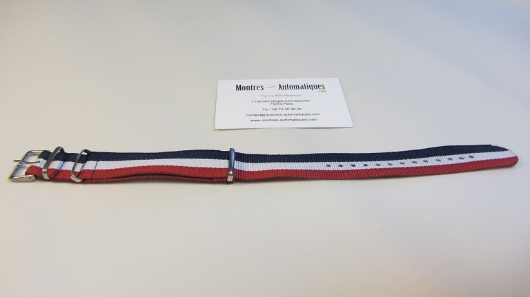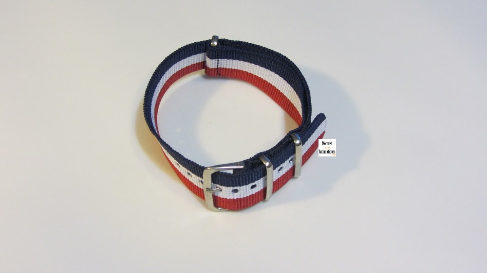 Bracelet Nylon NATO France, BLEU FONCÉ / BLANC / ROUGE FONCÉ :