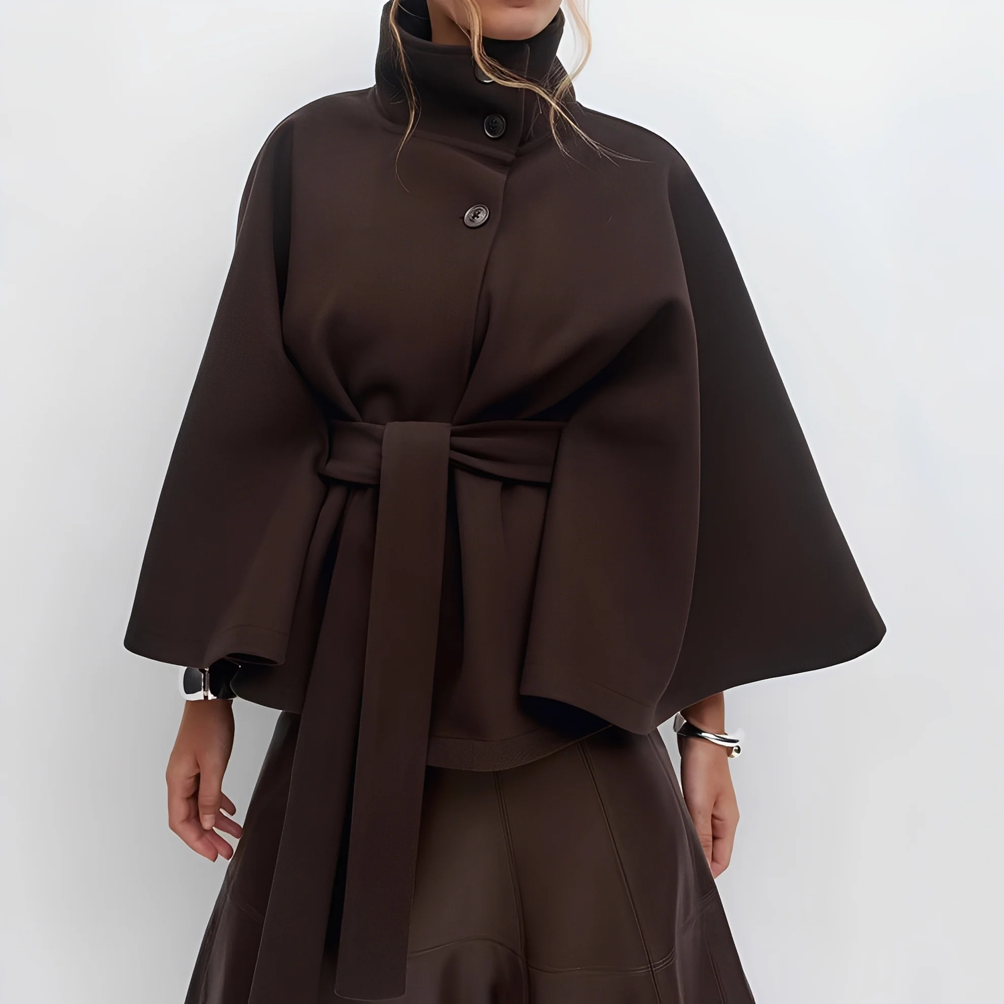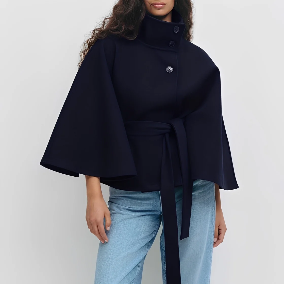 • Col montant élégant et manches larges qui rehaussent votre style sans effort