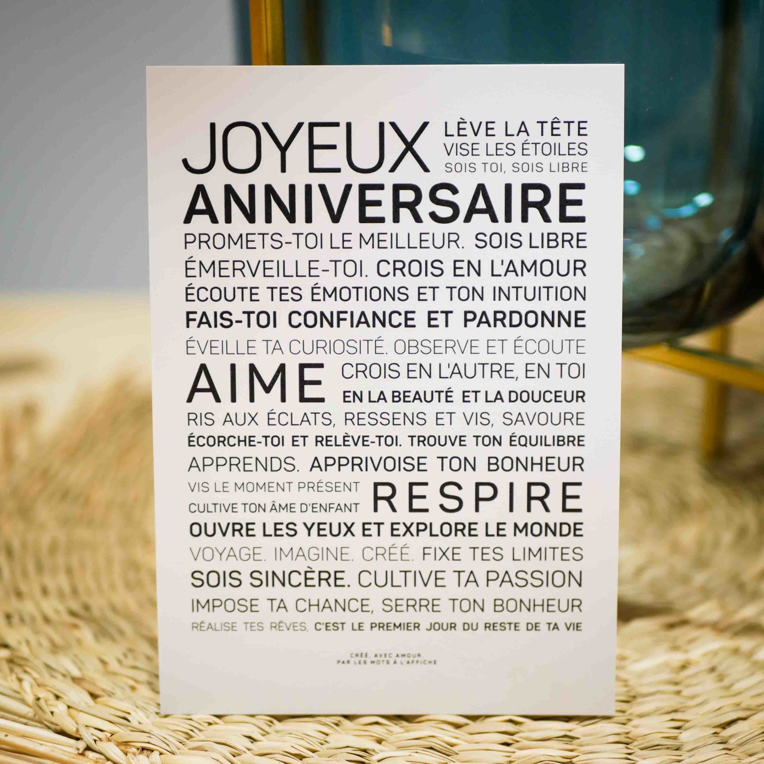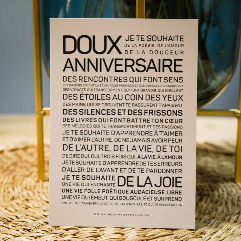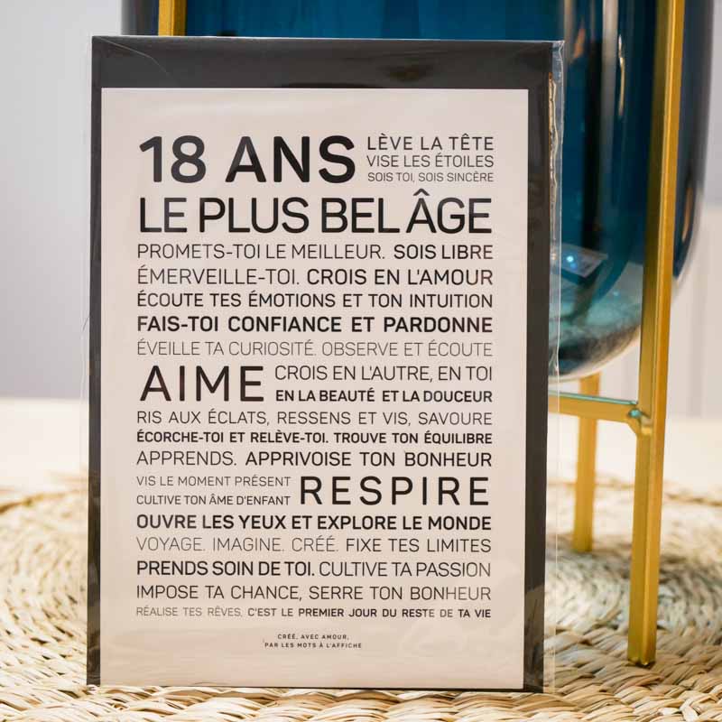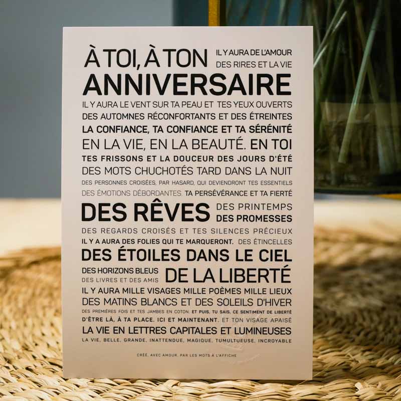 Au format carte postale (10.5 x 14.8 cm) sur un beau papier mat de 250g, ces douces paroles peuvent s’encadrer ou s’envoyer (enveloppe noire fournie).