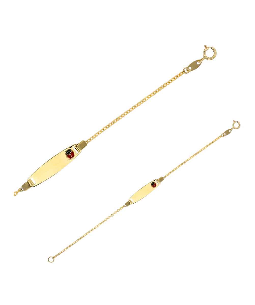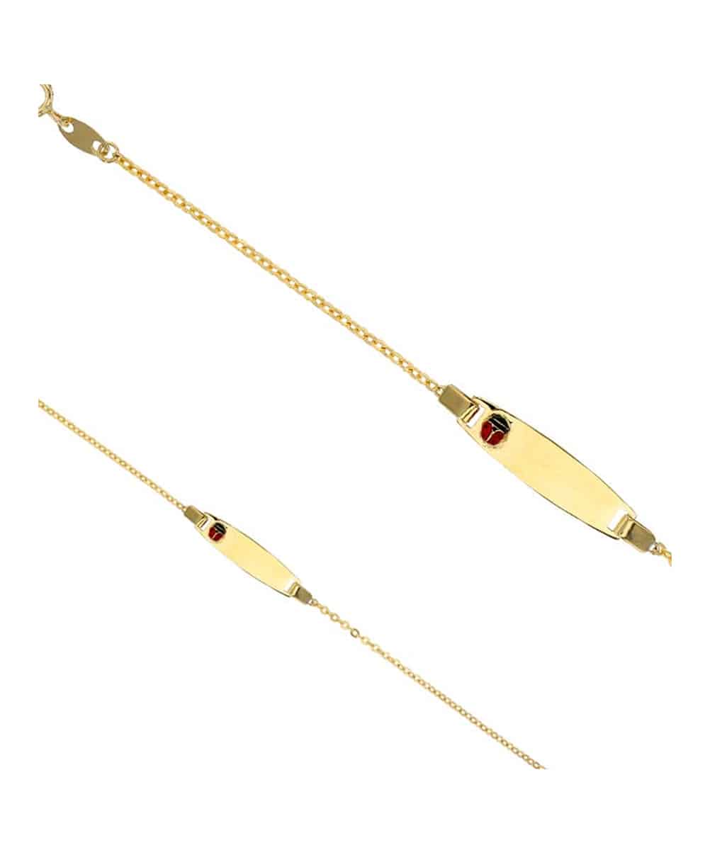 La chaîne Ariadne bébé coccinelle est en or 750/1000 (18 carats) de couleur dorée, de longueur 14 cm, spéciale pour les enfants.