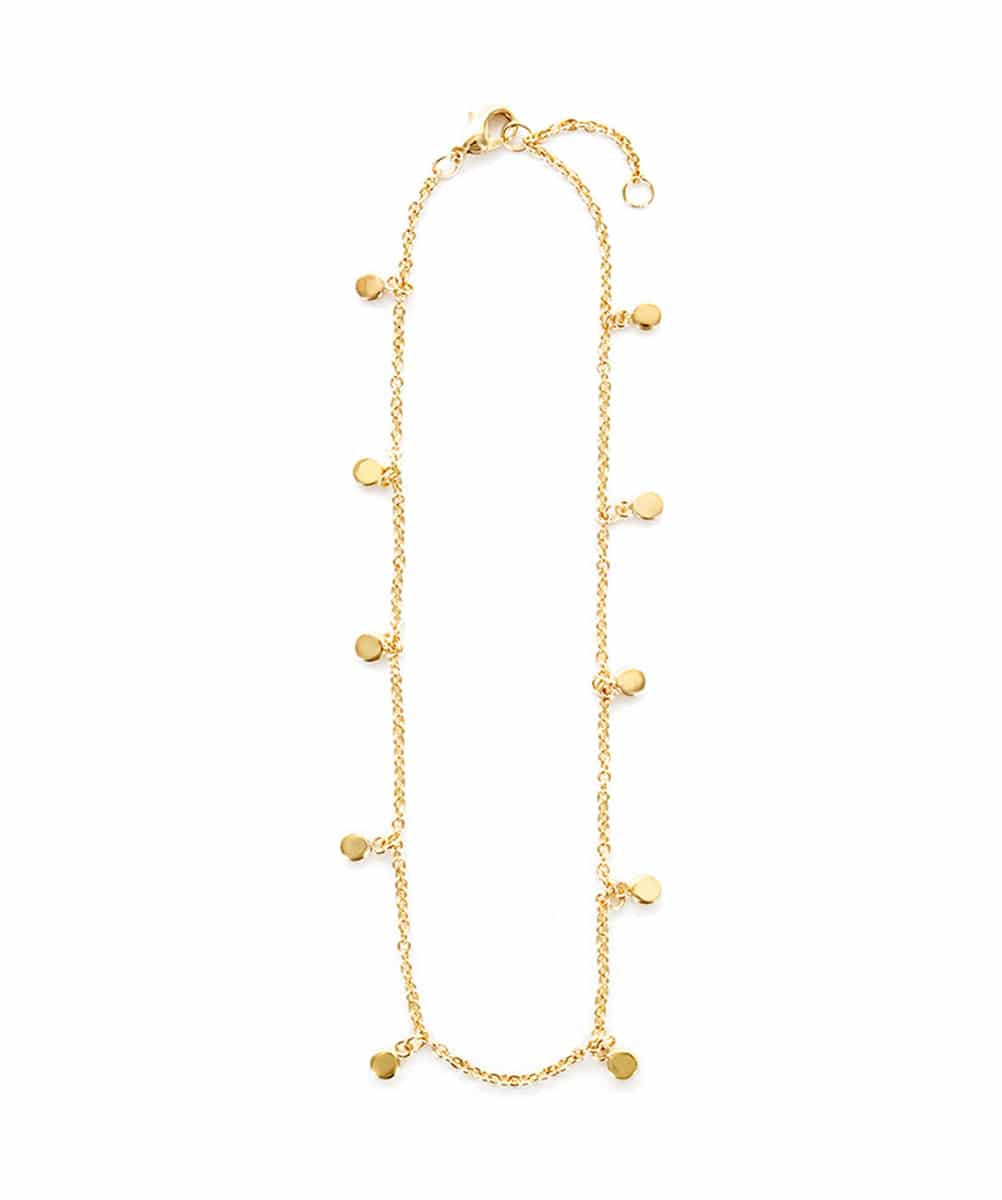 Cette belle chaîne stylée ornée de pampilles plates est disponible en couleur doré.