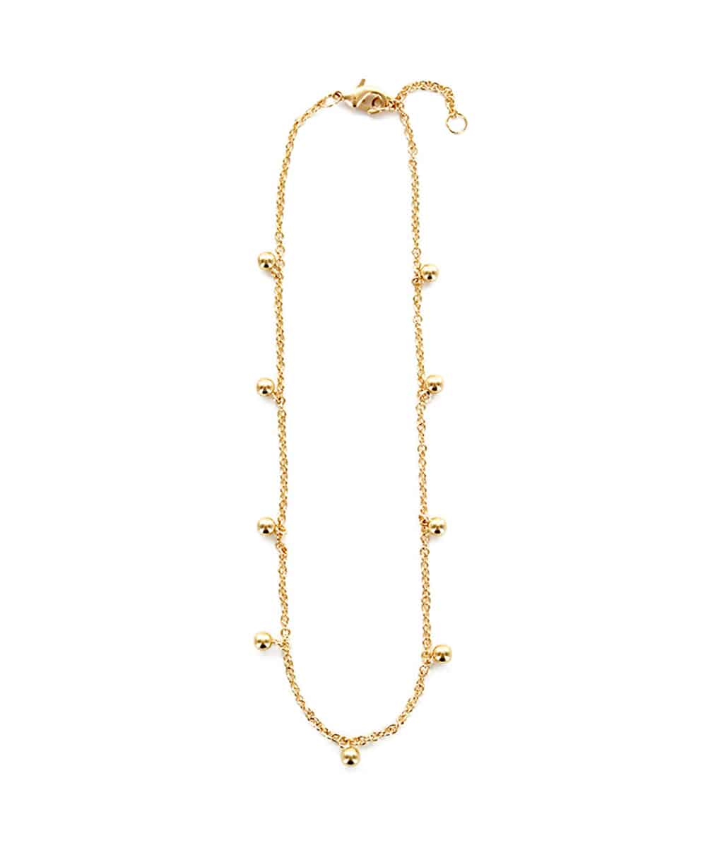 Chaîne de cheville Mallory ornée de pampilles boules, plaqué or.