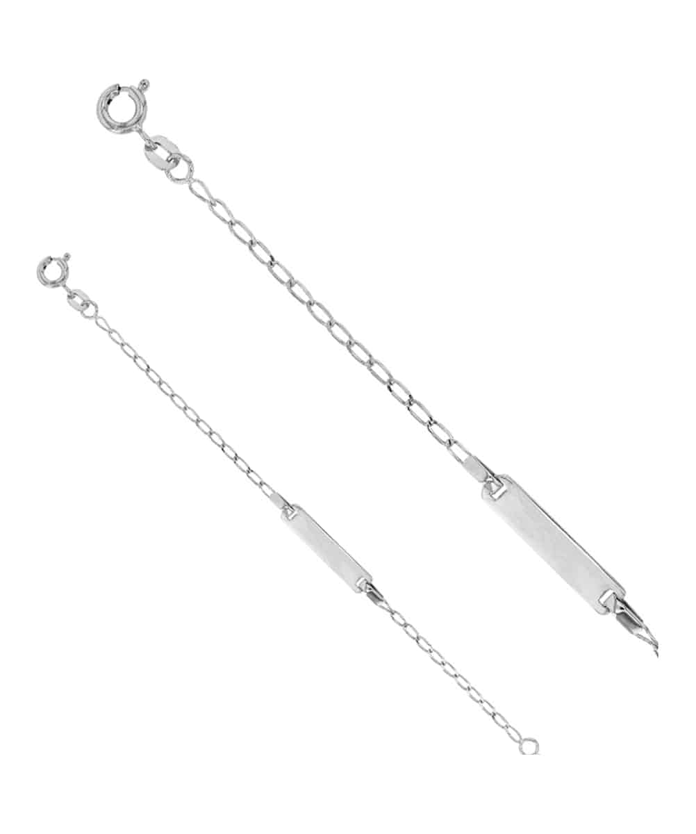 La chaîne Sania bébé est en or 750/1000 (18 carats) de couleur argentée, de longueur 15 cm, spéciale pour les enfants.