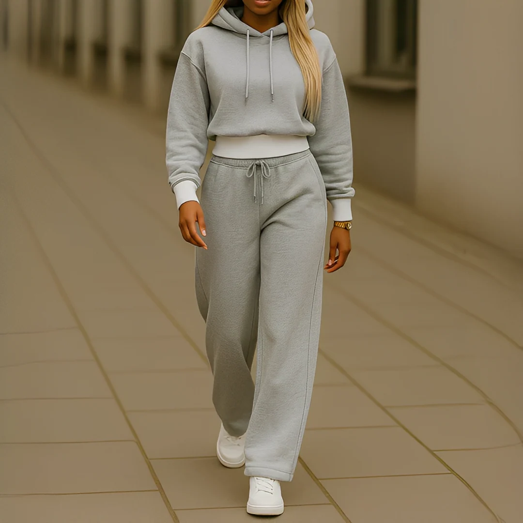 - Ensemble assorti élégant : sweat à capuche et pantalon de jogging coordonnés pour un look décontracté raffiné.