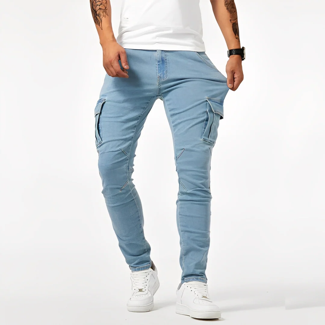 Rafraîchissez votre collection décontractée avec ce jean cargo ajusté pour homme Clarence, pensé pour marier aisance et élégance. Fabriqué avec un tissu extensible, il permet une grande liberté de mouvement tout en gardant une silhouette moderne et fit. Ses nombreuses poches sont pratiques pour ranger vos indispensables, ce qui le rend idéal pour un style urbain ou l’usage quotidien. Son design adaptable se combine facilement avec des sneakers, bottes ou chaussures casual pour un look soigné mais relax. Parfait pour des sorties tranquilles, voyages ou explorations urbaines, ce jean cargo conjugue parfaitement utilité et mode.