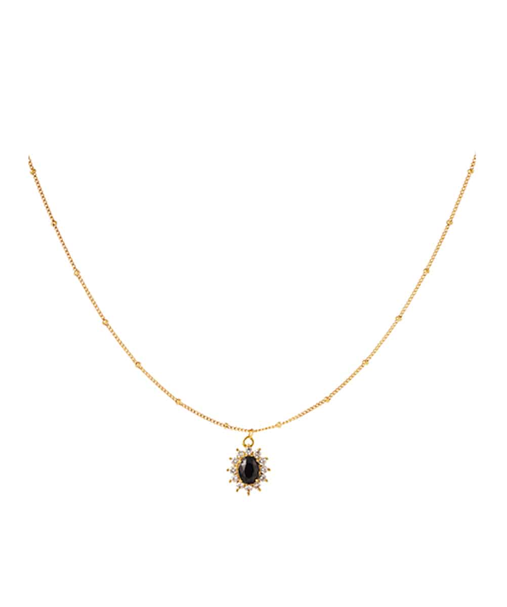 Collier Allicia en acier inoxydable avec une pierre précieuse de couleur et de petites pierres en zircon autour.