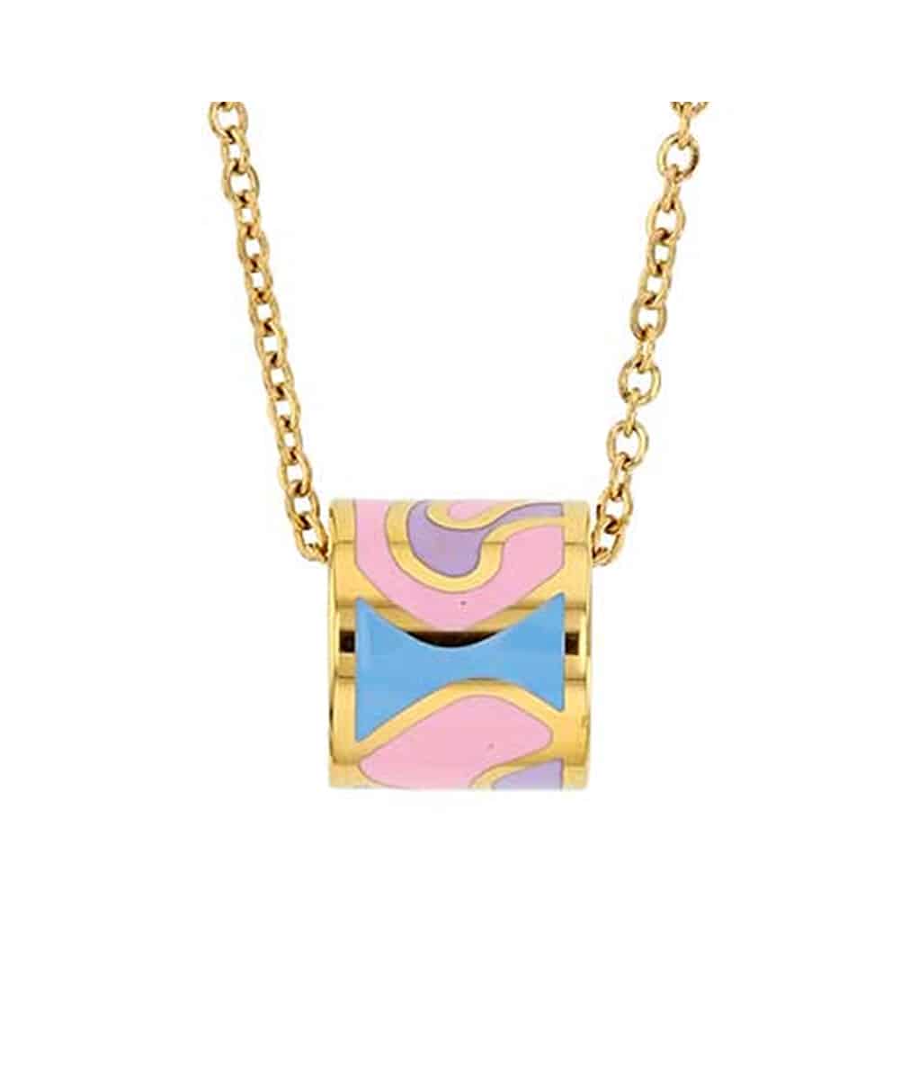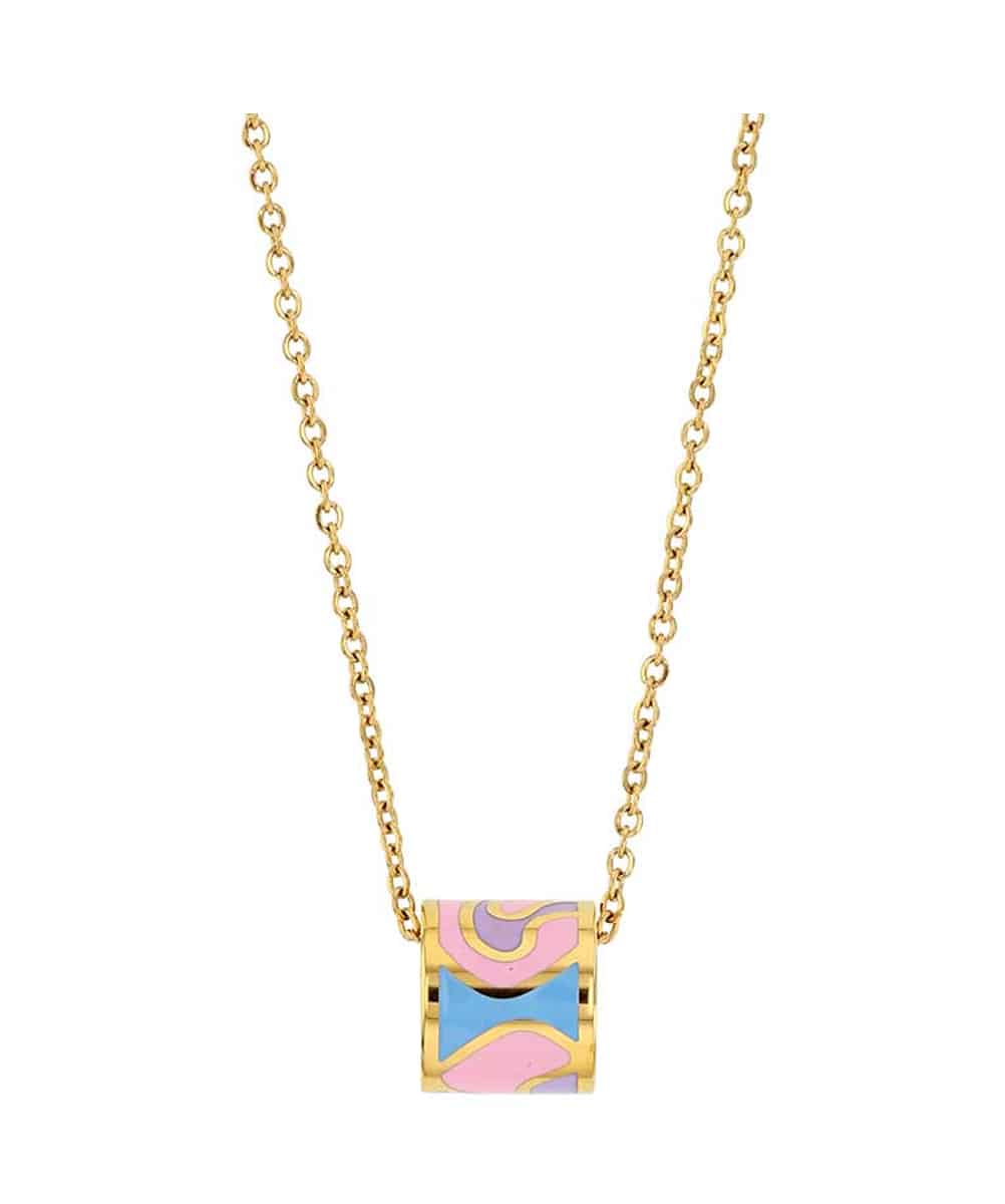 Le collier fantaisie Brielle est fabriqué acier doré et motifs émaillés de couleurs.