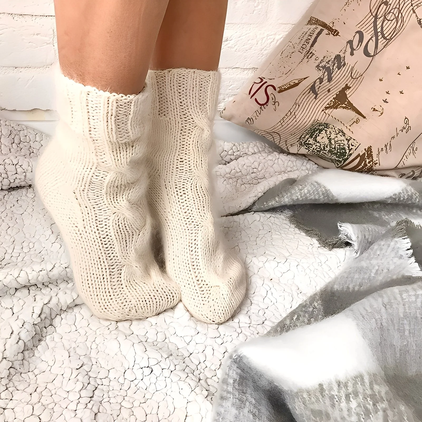 Appréciez une douce chaleur – avec les chaussettes Dorothy en laine tricotée pour femmes.