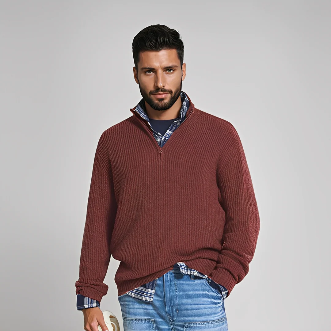 Un pull homme avec un demi-zip combinant chaleur, confort et style décontracté classique.