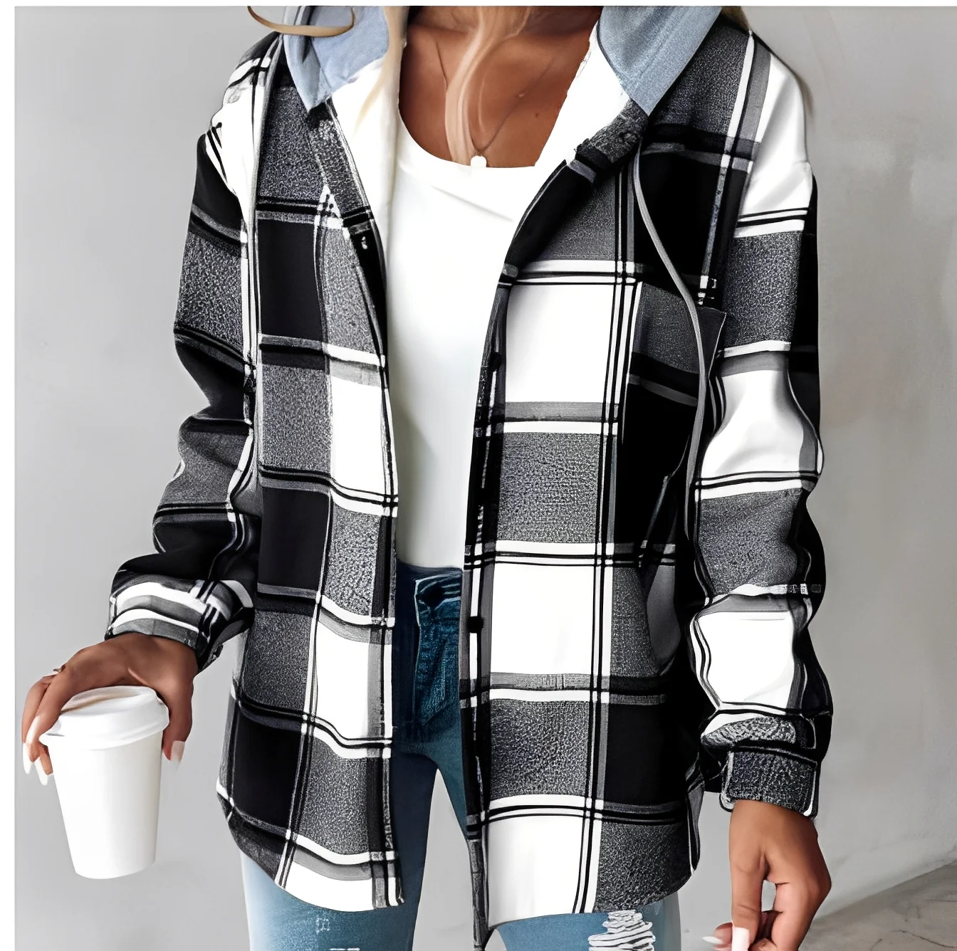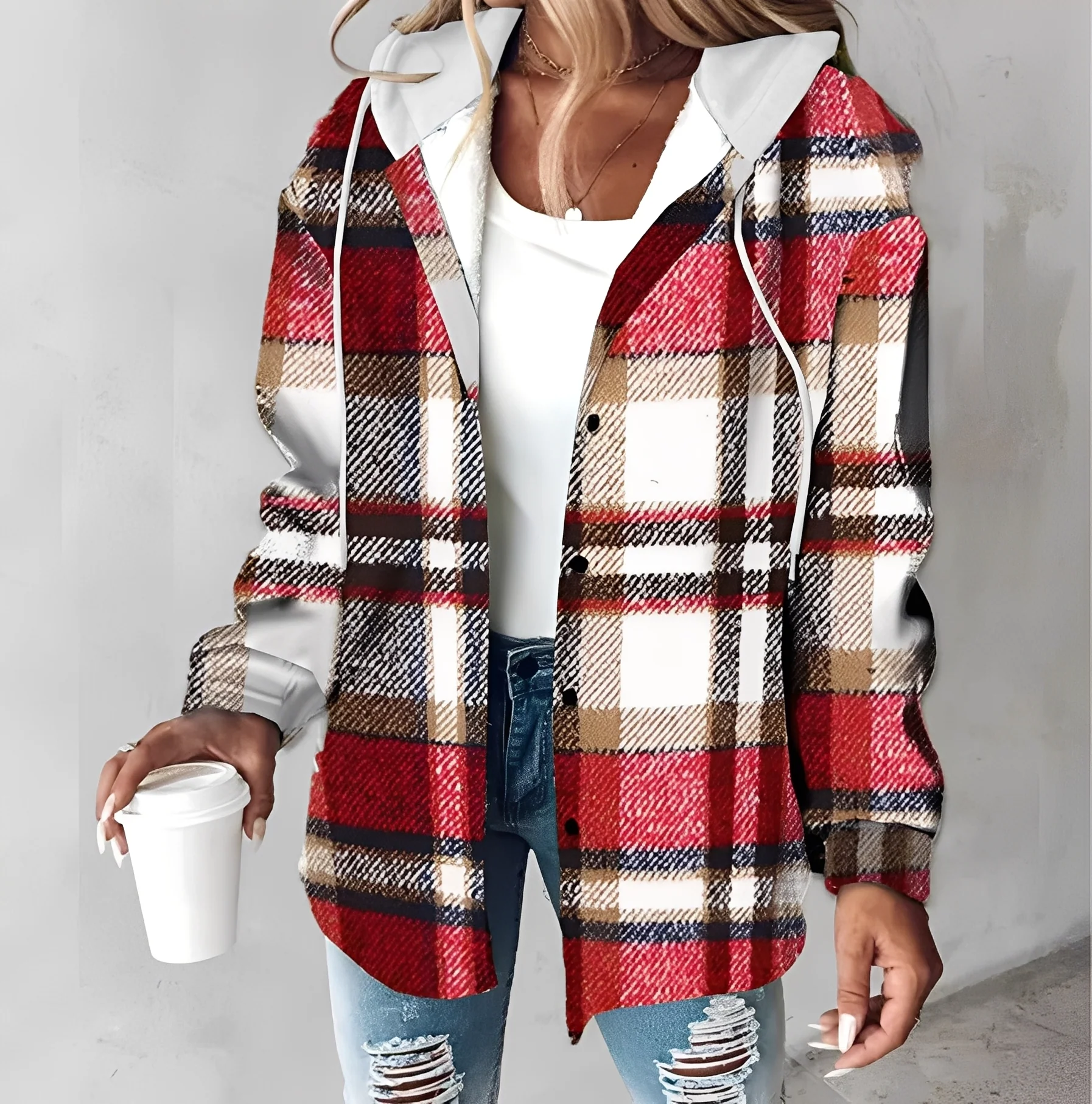 La veste à capuche à carreaux Éliette allie chaleur, confort et style décontracté pour une mode hivernale sans effort.