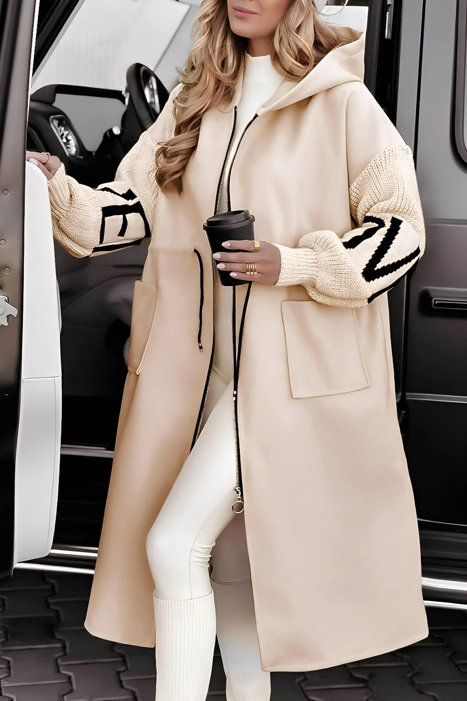 Cette longue veste se démarque avec son tissu chaud et sa capuche utile pour une protection accrue contre le vent et le froid. Sa coupe moderne garantit un look chic, tandis que sa coupe ample procure une grande liberté de mouvement. Idéale pour les journées fraîches, une tenue quotidienne ou des occasions spéciales. Un essentiel de mode qui combine parfaitement confort et élégance.