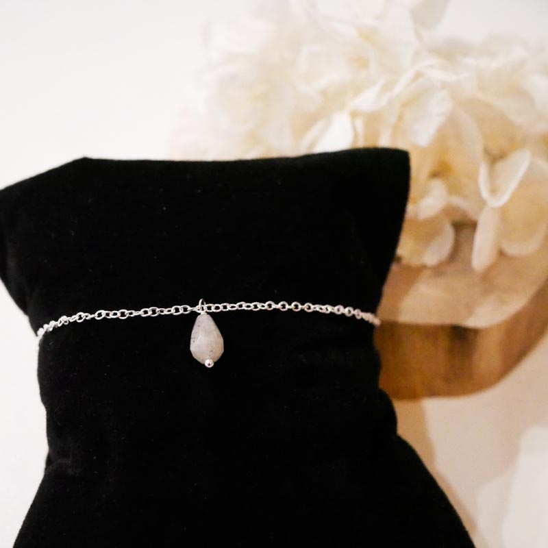 • Matériau : base laiton, plaquage argent, pierre labradorite (grise)