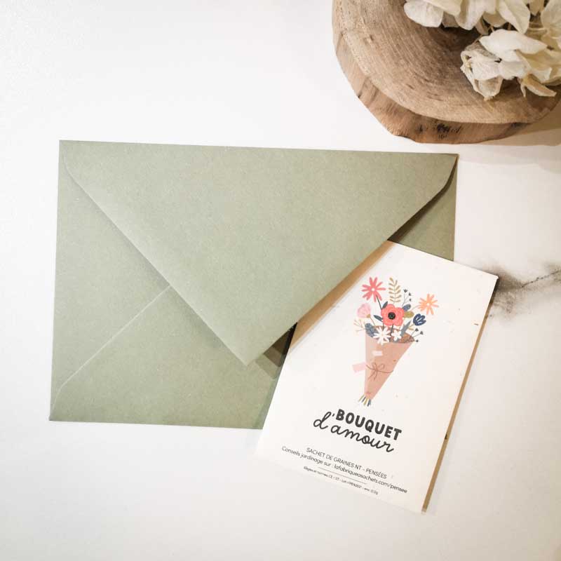 | Choix de l'enveloppe | Bleu, Ivoire, Jaune, Rose pâle, Terracotta, Vert menthe, Vert olive |
