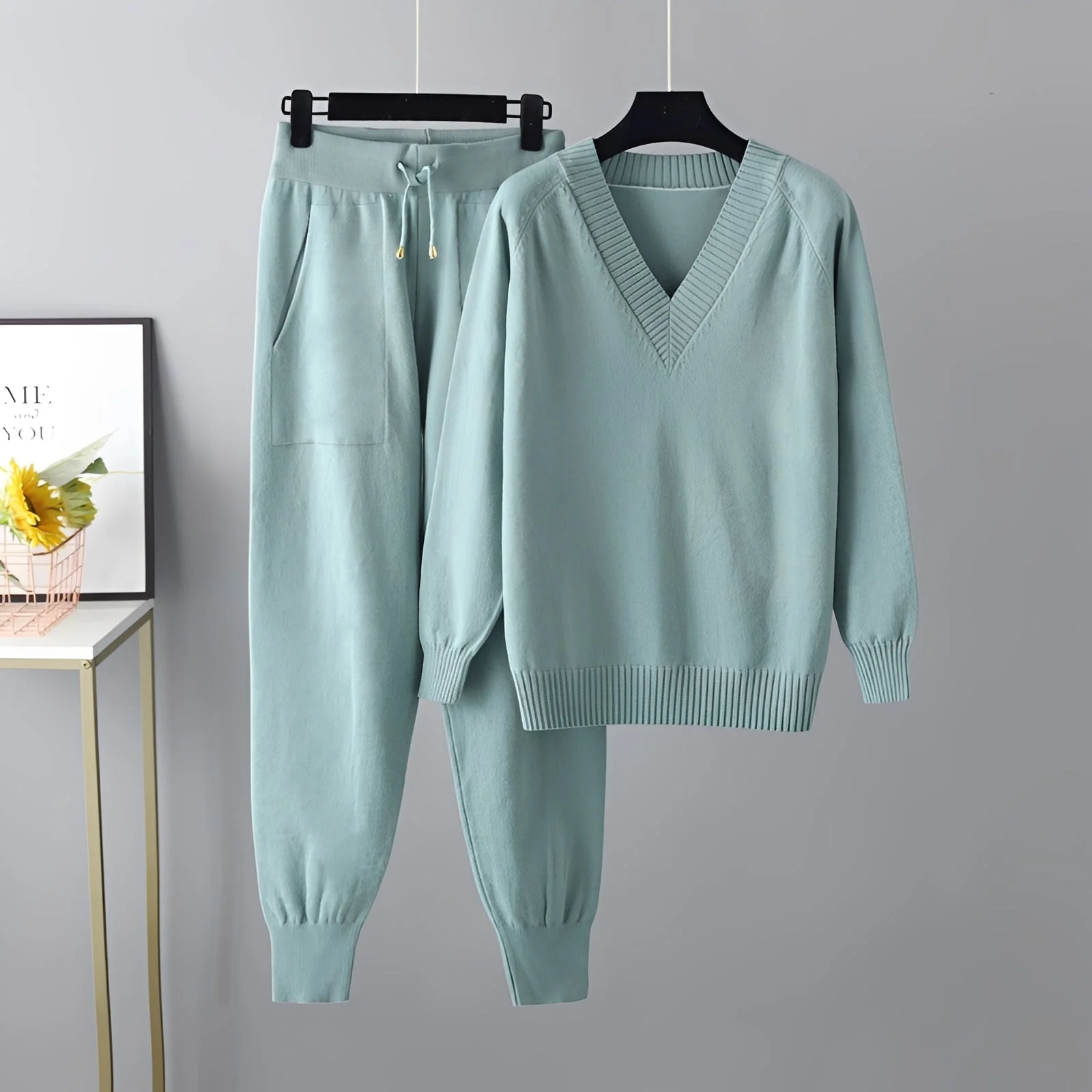 L’ensemble « Evelyn » couple un pull chic avec un pantalon parfaitement coordonné pour un look cohérent. Le tissu doux et de qualité supérieure procure une sensation de confort et une apparence raffinée. La coupe contemporaine allie confort et style. Parfait pour des journées relaxantes, des tenues de loisirs élégantes ou des moments douillets à la maison.Un ensemble flexible pour les femmes tendanceUn ensemble flexible pour les femmes tendancefemmes.