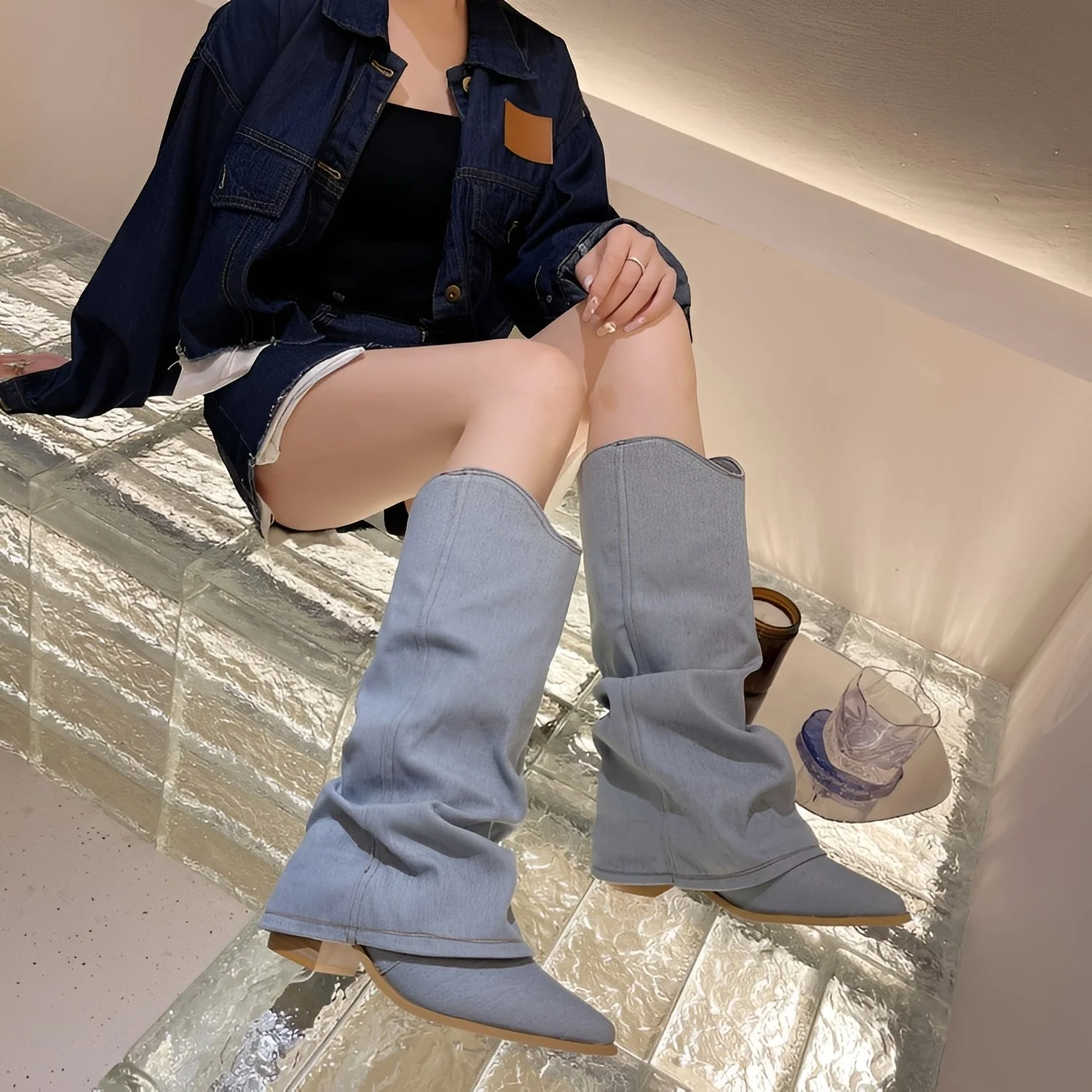Les bottes cavalières « Gabrielle » mêlent un look denim décontracté avec une coupe classique. La finition haut de gamme garantit stabilité et confort agréablemen Confort de port. Parfait pour être associé à des robes, jupes ou jeans pour un style actuel. La coupe haute jusqu’aux genoux apporte une touche chic à l’ensemble. Idéal pour un usage quotidien, les loisirs ou les événements spéciaux.