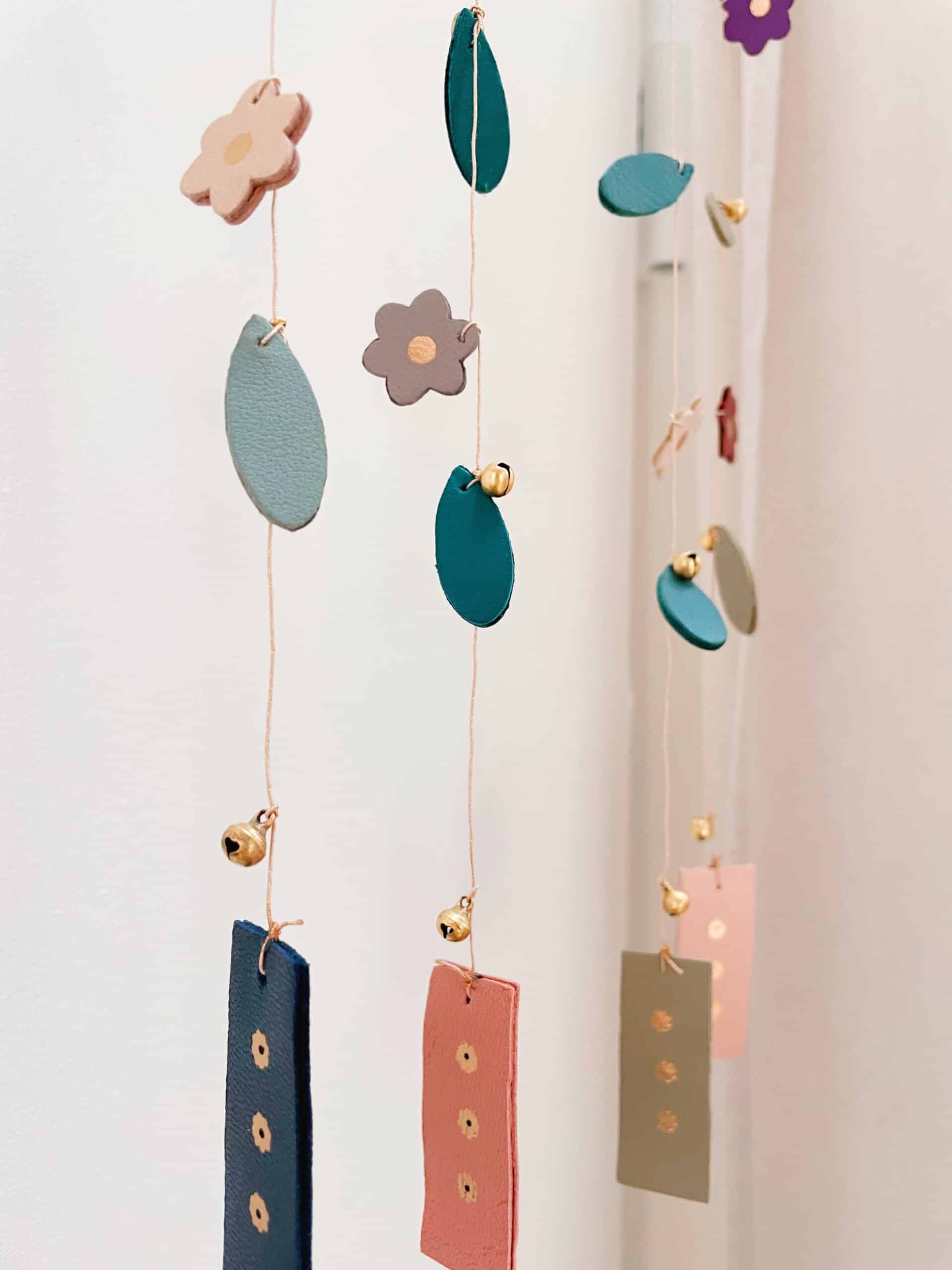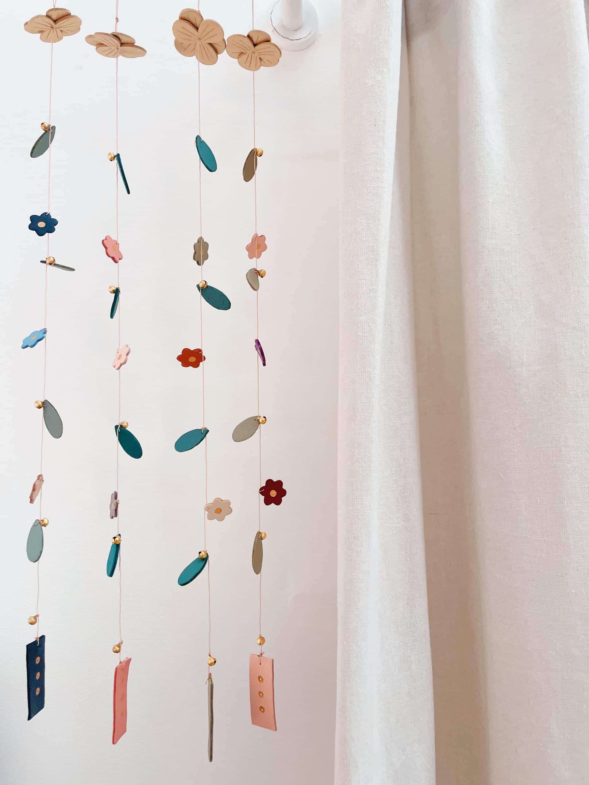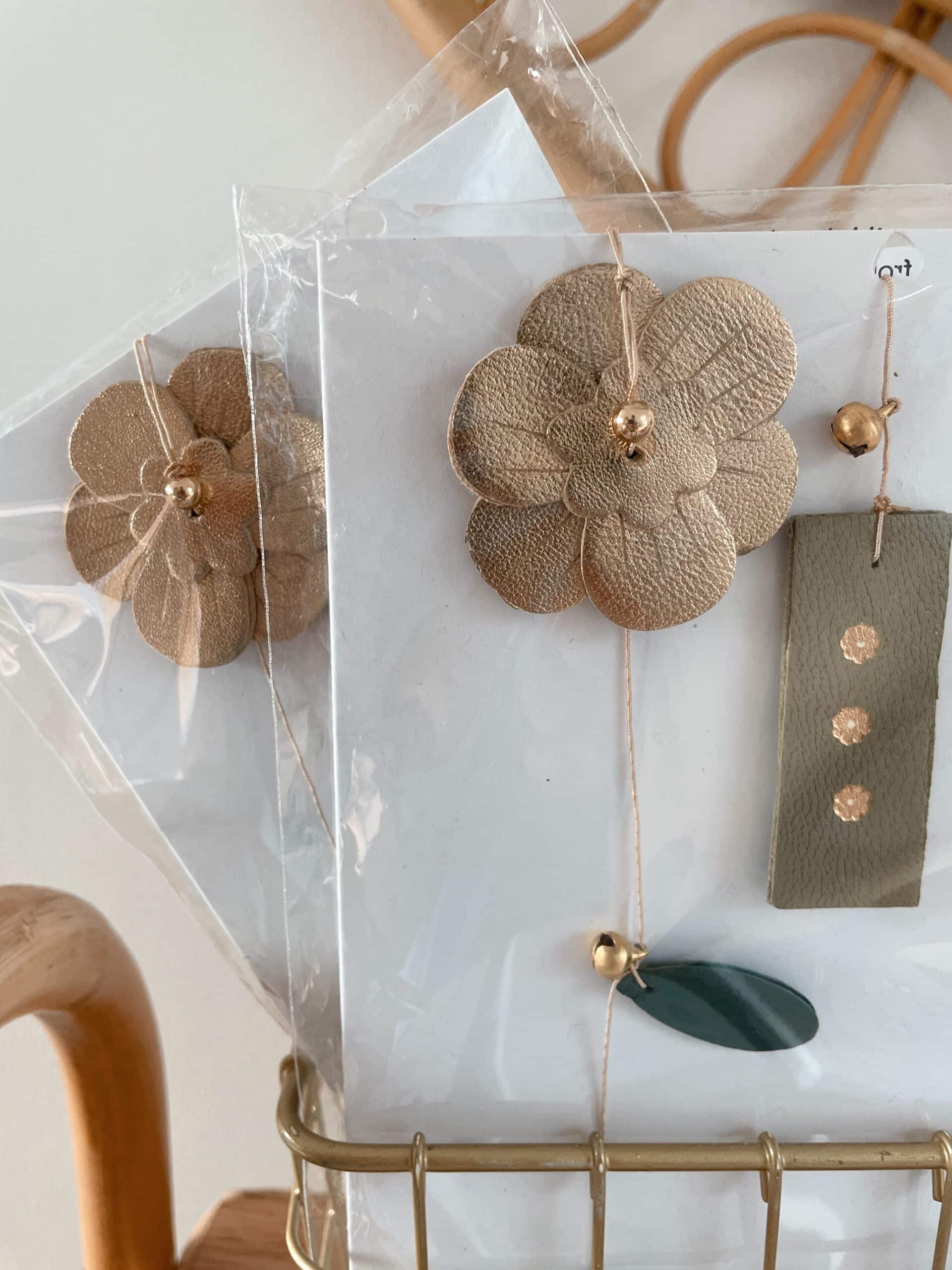 Cette ravissante suspension hanakaze est une décoration d’intérieur poétique pensée comme un bijou d’espace. Cet ornement raffiné se compose de feuilles et fleurs qui évoluent avec grâce et légèreté au gré des courants d’air. Elle est confectionnée de façon artisanale par mes soins dans mon atelier sur la terre des 2 caps (côte d’opale en France). Chaque pièce de la suspension est minutieusement découpée et ennoblie avec un procédé traditionnel de dorure à chaud à la main avant d’être assemblée avec de mini grelots en laiton sur un fil doré de fabrication italienne. Chaque pièce est donc unique. Elle est réalisée à partir d’excédents et coupons de cuir dans une démarche responsable de valorisation des matières premières (upcycling). Il s’agit de cuir d’ovins de provenance française. Comme il s’agit de chutes de cuir, les coloris peuvent varier légèrement.