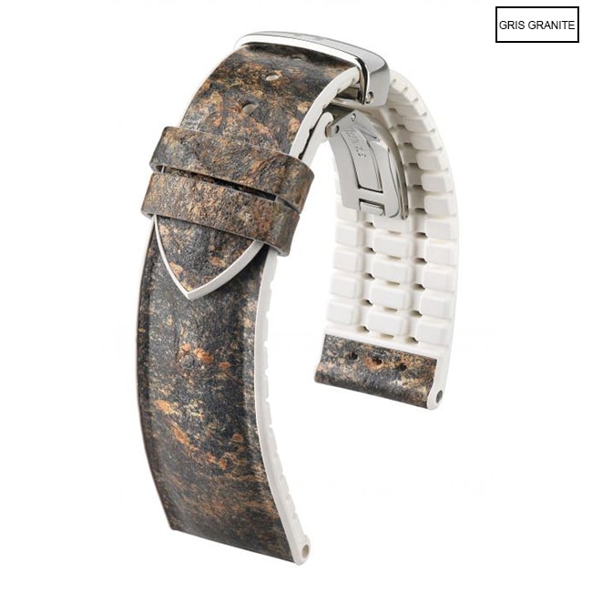Un bracelet en ardoise souple se délitant en feuilles très fines à traitement de surface spécial pour une robustesse supplémentaire