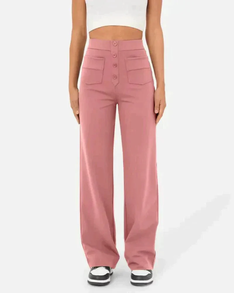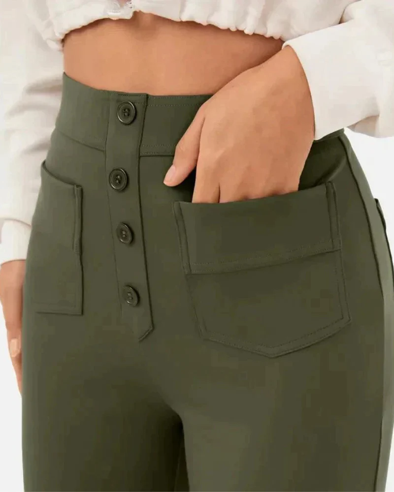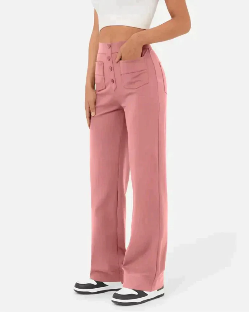 Voici Ines, le pantalon parfait conçu pour les femmes modernes qui apprécient à la fois le style et le confort. Ce pantalon taille haute, élastique et extensible, allie harmonieusement sophistication et polyvalence, pour un look chic en toute occasion.