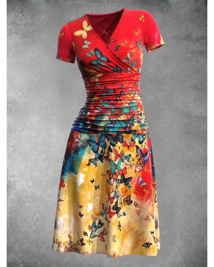 La robe Jacqui est une robe midi polyvalente qui allie style et confort sans effort. Avec son imprimé captivant et son col en V flatteur, cette robe est parfaite pour toutes les saisons.