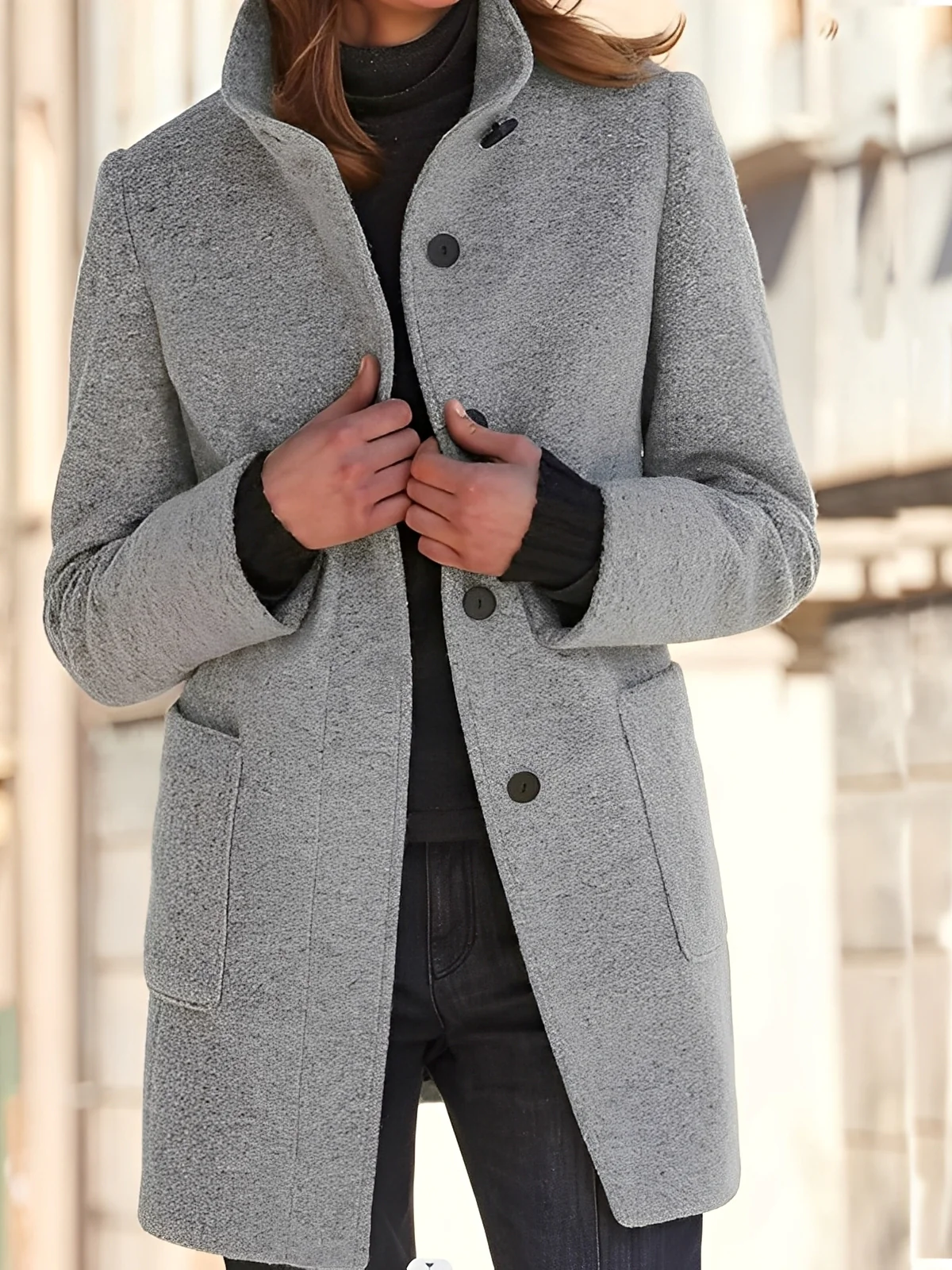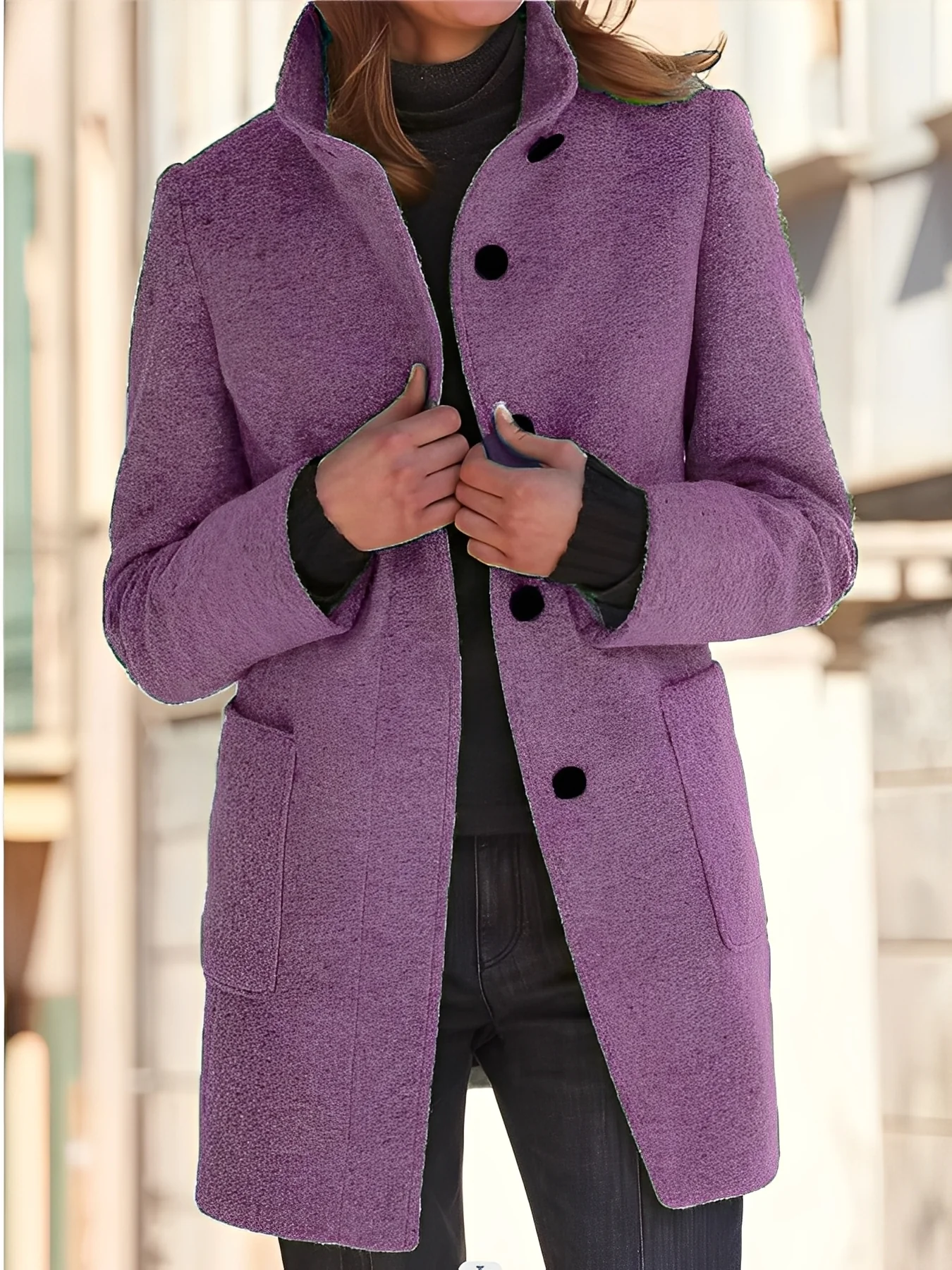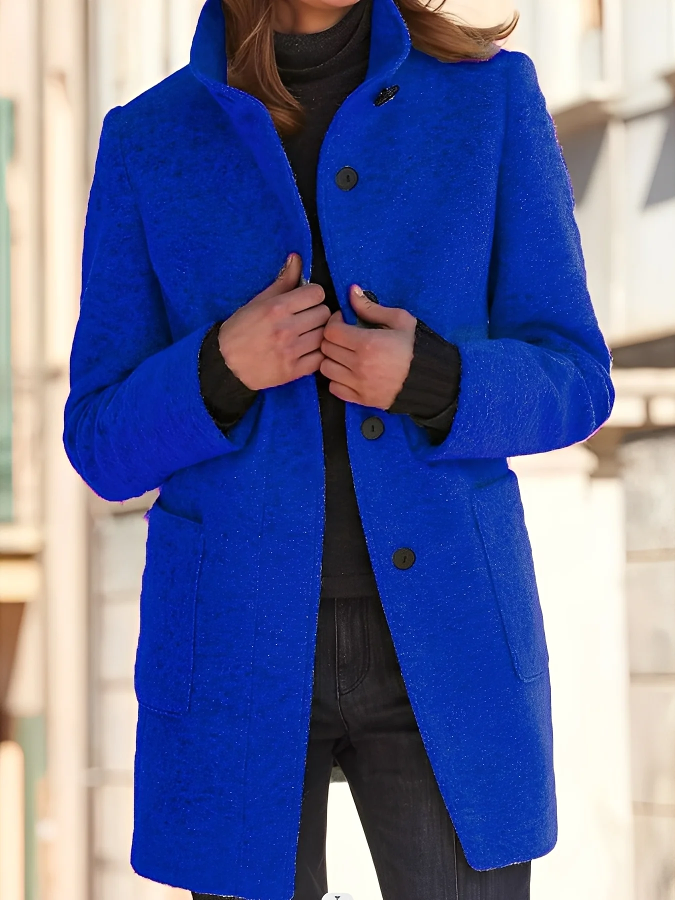 Le manteau d’hiver pour femme Julissa est conçu pour vous garder au chaud tout en conservant un look chic et élégant. Fabriqué à partir d’un mélange de laine douce et de haute qualité, il offre une excellente chaleur et un confort optimal, même pendant les journées les plus froides. Sa coupe ajustée met votre silhouette en valeur, tandis que ses poches latérales pratiques ajoutent une touche de commodité et de fonctionnalité. Parfait pour les sorties décontractées comme pour les occasions formelles, ce manteau allie sans effort sophistication et confort au quotidien.