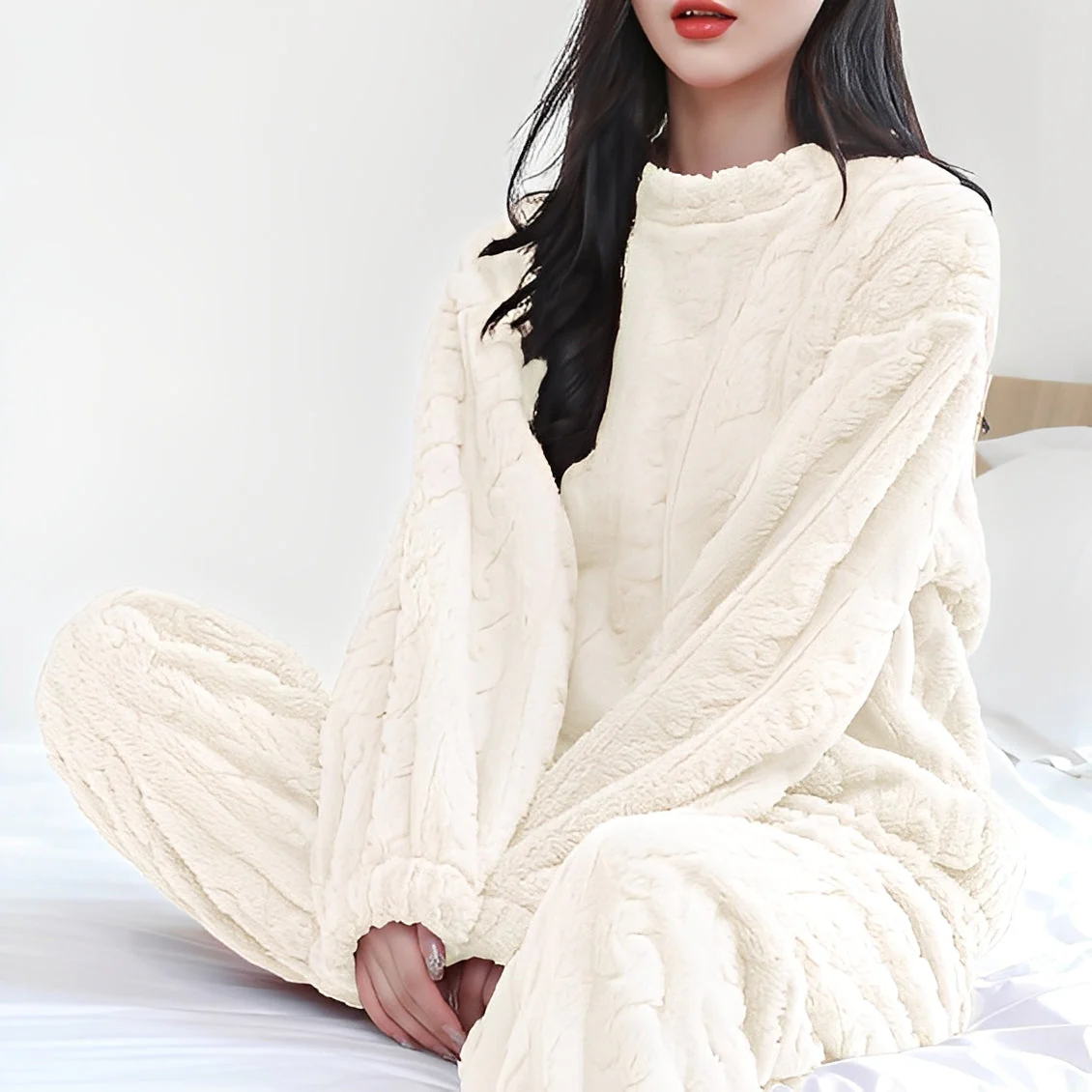 L’ensemble polaire Kilie procure un confort ultime lors des nuits fraîches. Conçu avec une matière polaire ultra douce, il assure une chaleur agréable et est extrêmement doux sur la peau. Son design en deux pièces – composé d’un haut à manches longues et d’un pantalon confortable – garantit une grande liberté de mouvement et un style décontracté. Parfait pour se détendre, dormir ou profiter du canapé en toute quiétude.