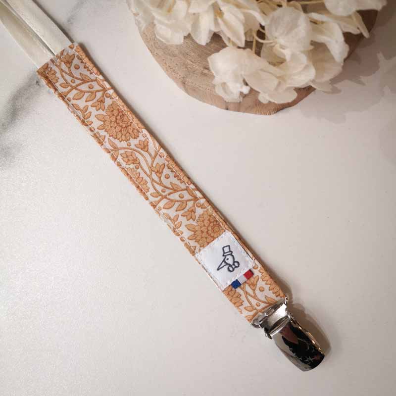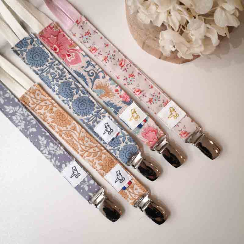 • Attache-tétine en tissu imprimé certifié oeko-tex, pince en métal