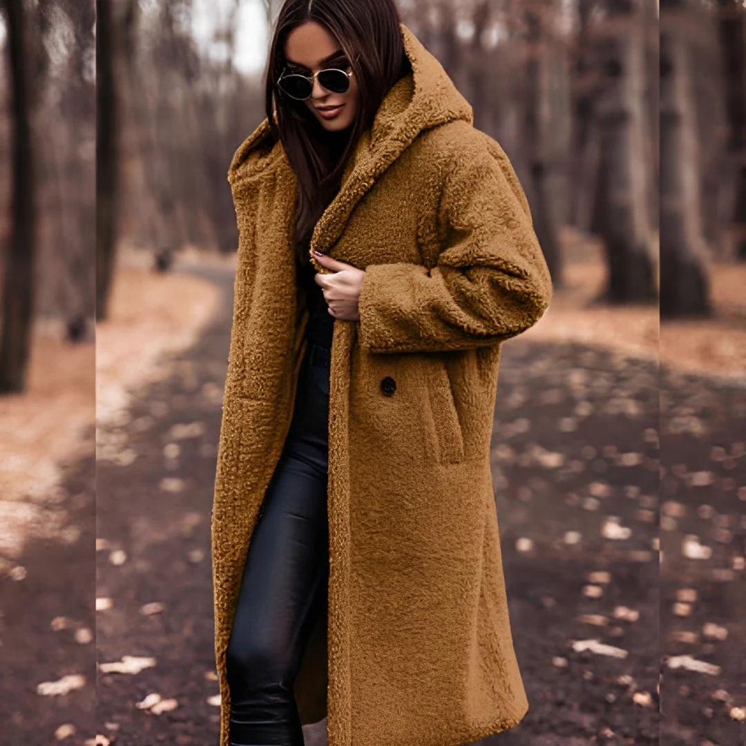 Découvrez notre manteau d’hiver à capuche en fausse fourrure pour femme Lucette, conçu pour offrir une chaleur, un confort et une élégance ultimes pendant la saison froide. Avec sa doublure en fausse fourrure moelleuse, sa capuche protectrice et son tissu extérieur doux mais résistant, ce manteau vous garde au chaud même pendant les journées les plus froides. Sa coupe structurée met en valeur votre silhouette tout en vous offrant une sensation de luxe que vous pouvez porter au quotidien. Parfait pour les sorties hivernales, les promenades en ville ou les tenues quotidiennes élégantes, il allie fonctionnalité et style.