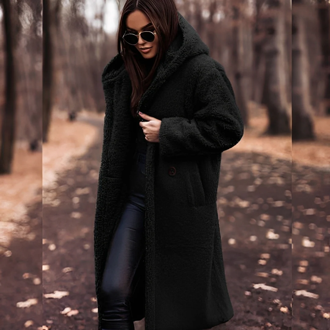 Restez chic et confortablement au chaud tout l’hiver avec cet élégant manteau à capuche en fausse fourrure pour femmes.