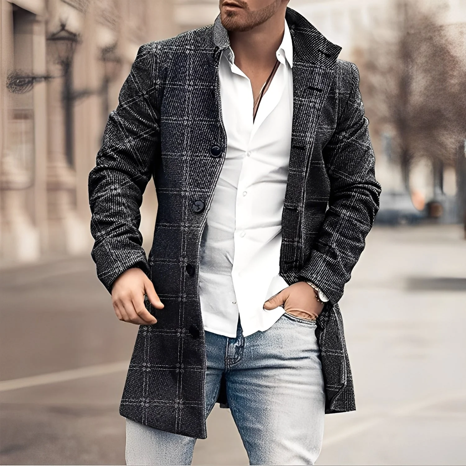 Le manteau en tweed « Luke » combine un design traditionnel avec une touche contemporaine. Confectionné en tweed de qualité supérieure, il procure une chaleur agréable et un look raffiné – idéal pour l’automne et le printemps. Sa coupe longue et raffinée met en valeur la silhouette masculine et convient aussi bien à des tenues formelles que décontractées. Une finition soignée et un design intemporel font de ce manteau un élément incontournable du style.