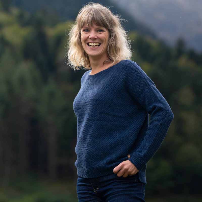 • Conseil d’entretien : laver peu (1 à 2 fois par saison); aérer votre pull régulièrement ; lavage main ou machine programme délicat/laine et essorage doux
