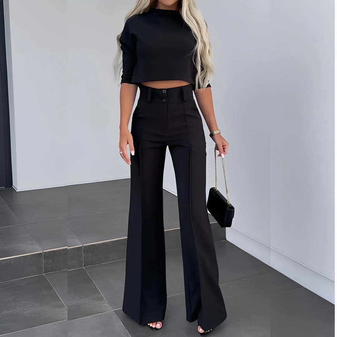 Rehaussez votre garde-robe avec notre ensemble moderne assorti composé d’un haut et d’un pantalon, où le style contemporain rencontre le confort quotidien.