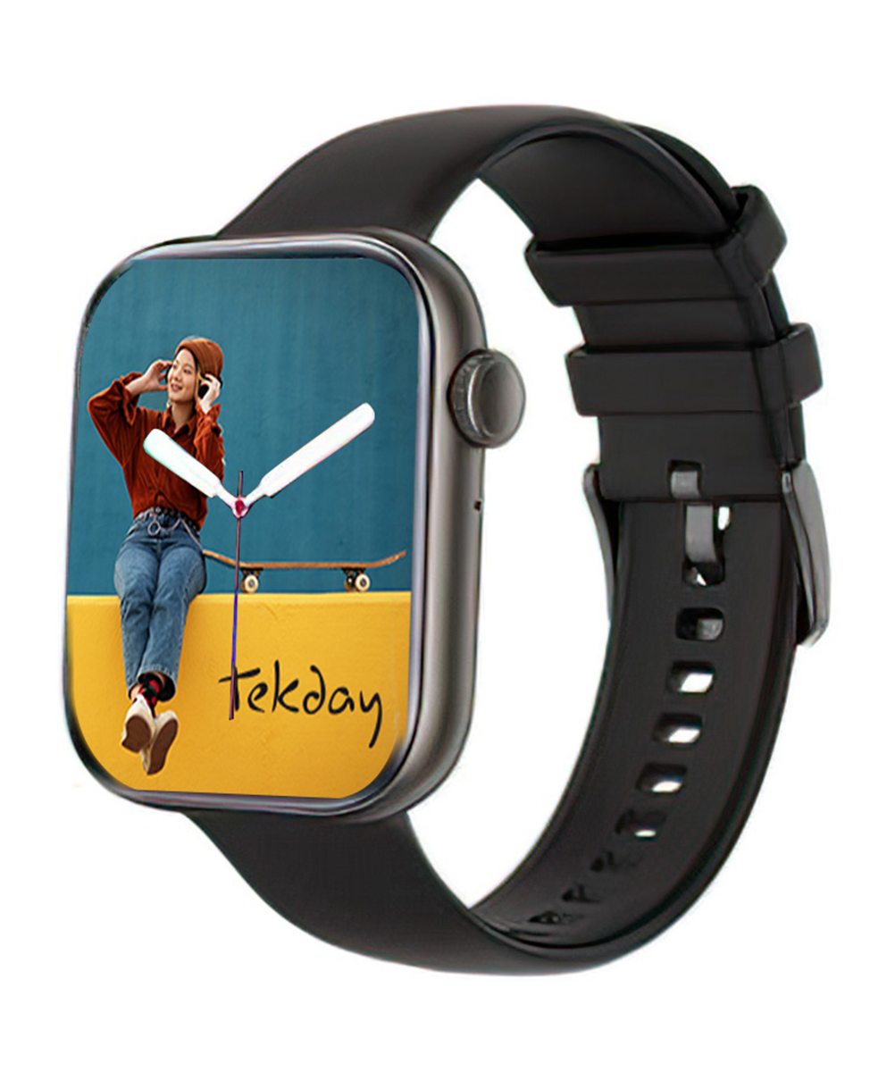 La montre connectée Tekday est conçue pour être portée par les hommes et les femmes, grâce à son design mixte.De plus son boîtier rectangulaire est en acier. Et le bracelet en silicone noir.