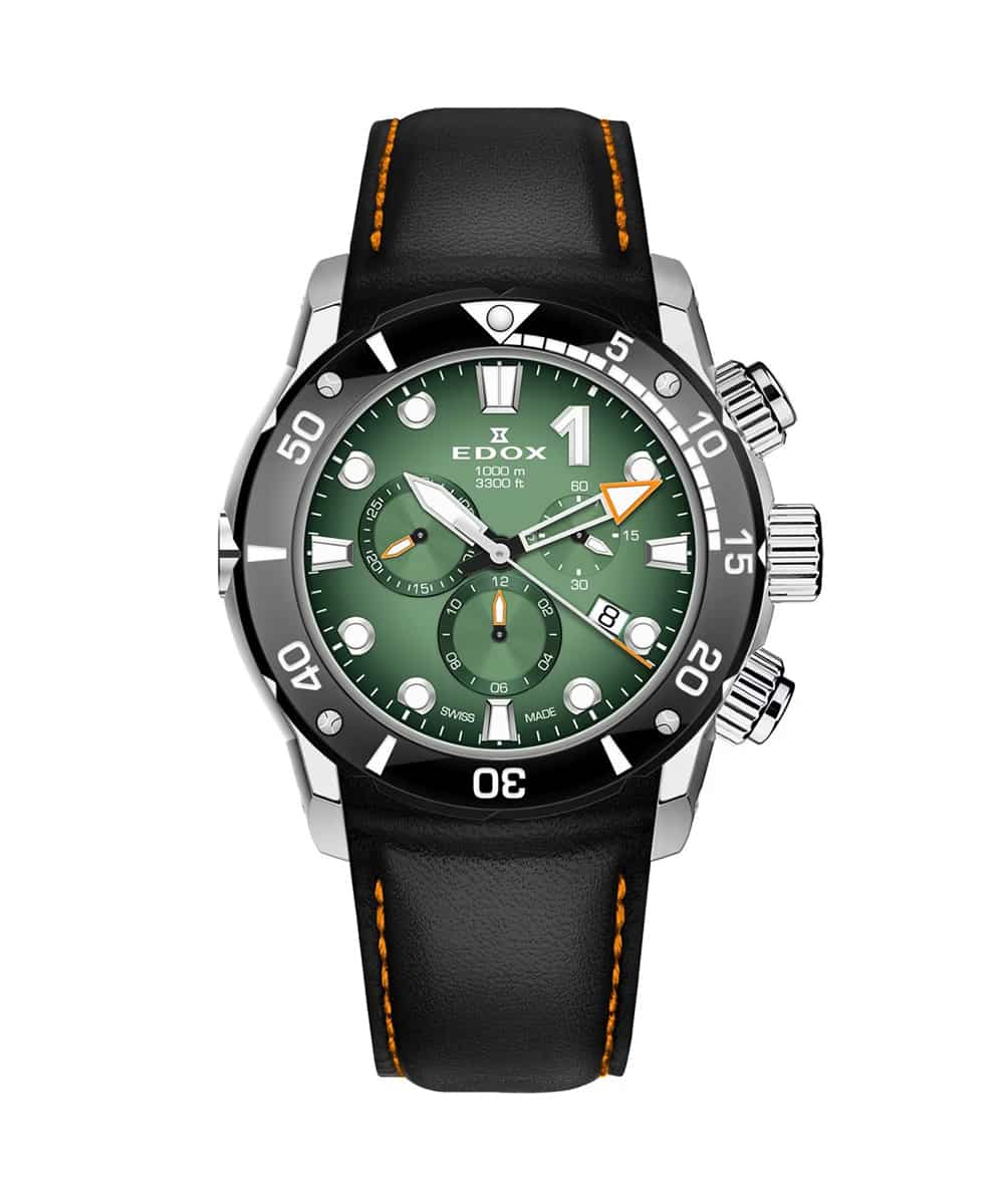 Ces caractéristiques exceptionnelles du mouvement RONDA 5030 D se combinent harmonieusement avec le design raffiné de la montre Edox CO-1 Chronograph Vert 10242-TIN-VIN. La fusion de la précision technique et de l’esthétique élégante fait de cette montre un accessoire aussi performant que séduisant.
