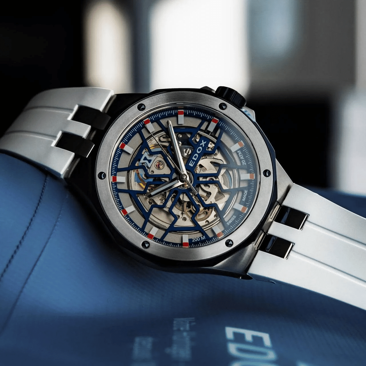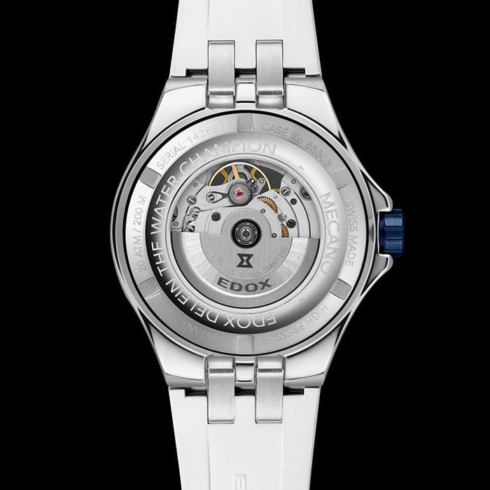 La Edox Delfin Mecano 85303-357BUCAB-BUIRB mérite bien son statut de montre de plongée d’exception. Avec un boitier robuste de 13 mm et une étanchéité à 200 mètres. Ce garde-temps unique fera le plaisir des amateurs de plongées et d’horlogerie.