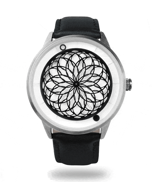 Fondé sur la simplicité des cercles concentriques, ce motif atteint une complexité harmonieuse. Différentes couches de pétales s’épanouissent en alternance, jusqu’à atteindre un point culminant lorsque 48 pétales s’ouvrent simultanément. Nous sommes inspirés par la possibilité d’utiliser le mouvement du temps pour créer une beauté visuelle, et peut-être même une signification philosophique. Nous voulons créer des sculptures cinétiques pour votre poignet.