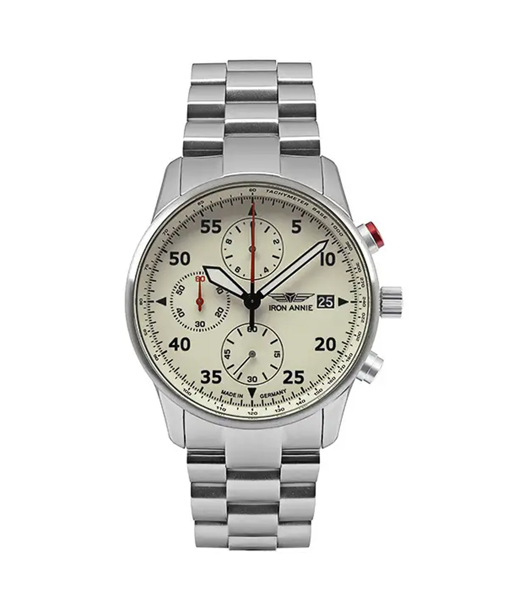 Au style Aviateur aiguisé, cette montre Iron Annie 5670M-5 F13 Tempelhof Acier Gris a de quoi plaire aux amateurs de montres Quartz dotés de mouvements solides.