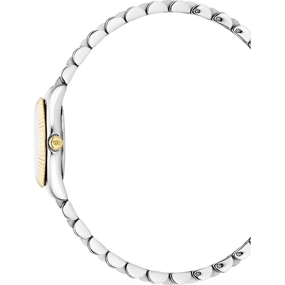 Avec son boîtier rond de 22 mm en acier inoxydable, cette montre affiche des proportions délicates, idéales pour un poignet féminin. La finition bicolore du boîtier et du bracelet crée une allure sophistiquée et polyvalente, adaptée à toutes les occasions. Protégé par un verre minéral, le cadran conserve son éclat au quotidien, tandis que l’étanchéité jusqu’à 5 bars permet une utilisation sereine, y compris sous la douche.