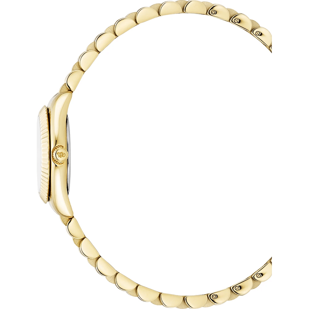 Son boîtier rond de 22 mm en acier inoxydable à la finition dorée épouse parfaitement le poignet avec finesse. Protégé par un verre minéral, le cadran conserve toute sa clarté au fil du temps. Le bracelet à maillons en acier inoxydable doré prolonge cette esthétique élégante, assurant confort et continuité visuelle. Grâce à son étanchéité de 5 bars, cette montre accompagne le quotidien en toute sérénité, y compris sous la douche.