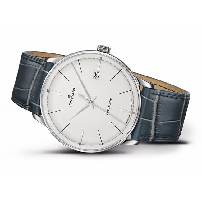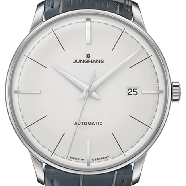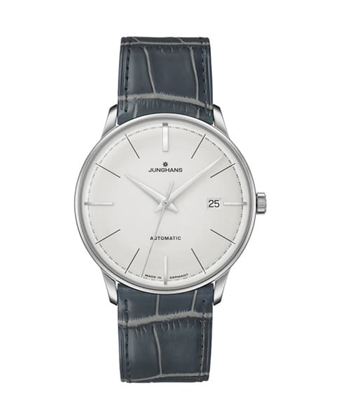 Les couleurs, quant à elles, sont choisies avec grand soin : le cadran gris est mis en valeur avec élégance avec l’argenté du boitier et des aiguilles. Enfin, les index et l’appellation Junghans Automatic couleur noir viennent ici apporter un dernier contraste à ce boitier sobre, moderne et infiniment séduisant !
