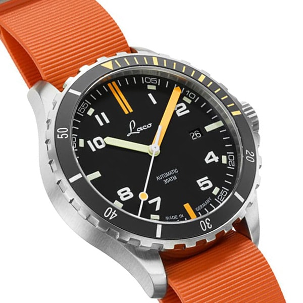 Robuste, versatile et lumineux dans le noir: le scorpion a les qualités nécessaires pour prospérer dans de nombreux environnements ; comme en est capable cette nouvelle Laco Squad. Constamment à la recherche d’innovation sur le design et sur la polyvalence de ses produits, Laco a doté son garde-temps de marquages appropriés, tel un gravage en forme de scorpion sur le fond du boitier ou en équipant ses aiguilles et ses index d’un matériau phosphorescent dans le noir (le Luminova).
